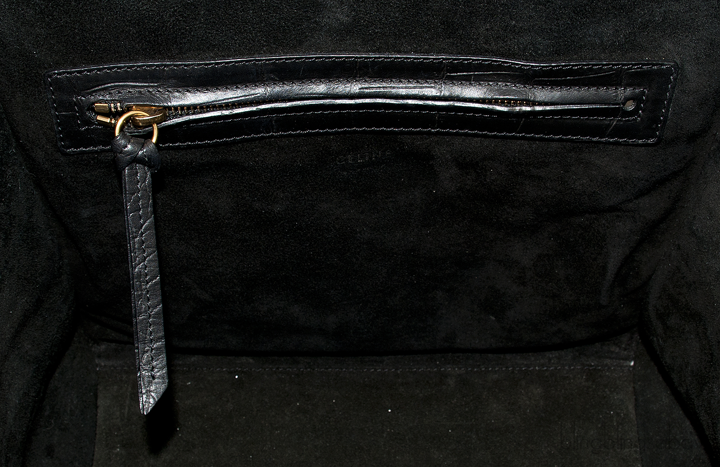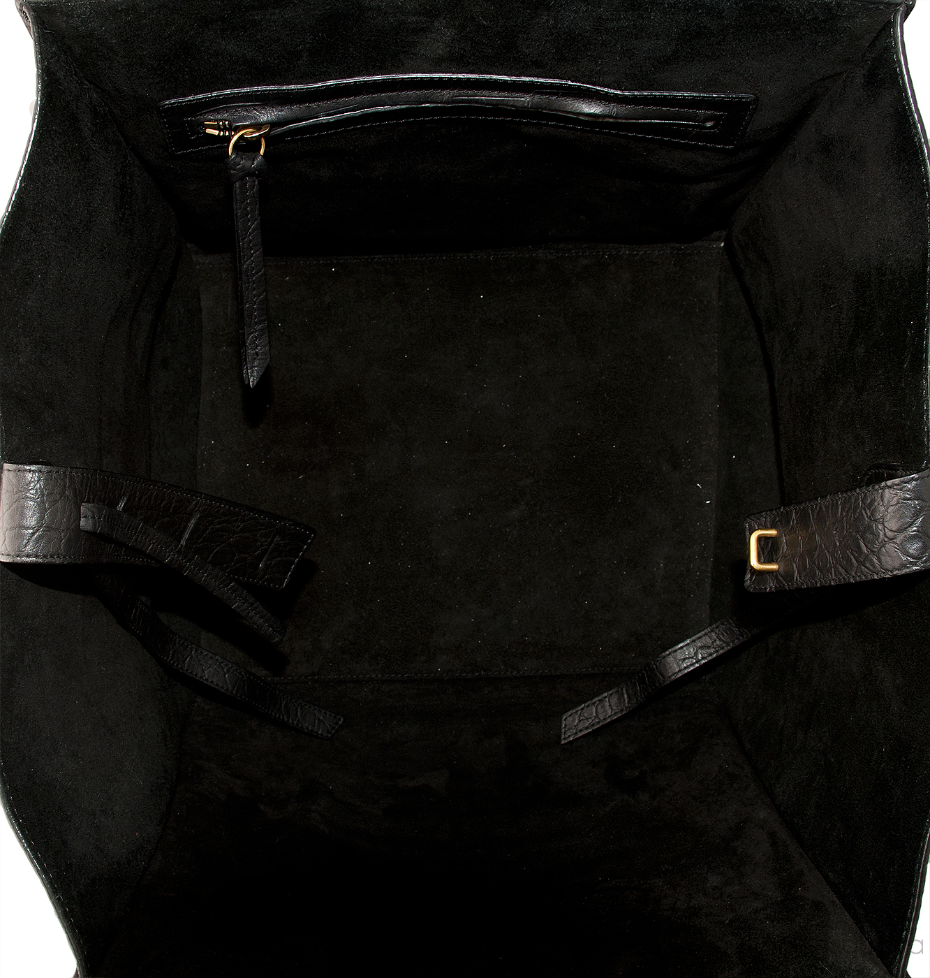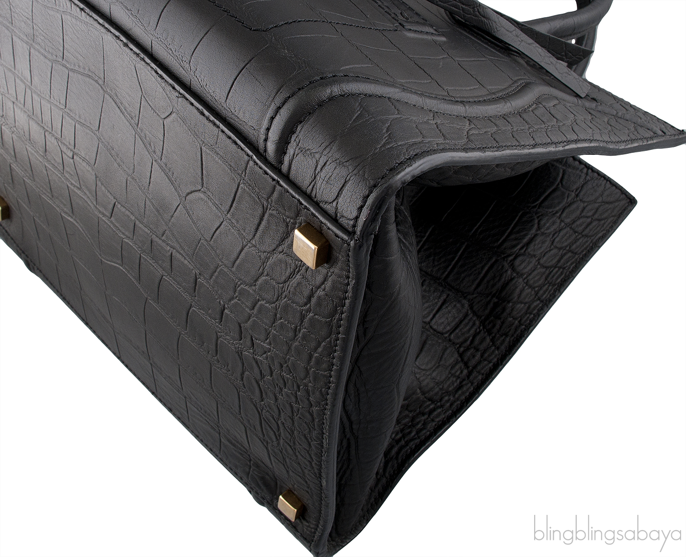 This Black Phantom Luggage is made from a smooth calfskin leather in skillful reinterpretation of Croco printing pattern with a Golden Hardware.