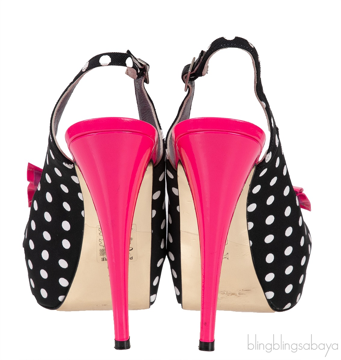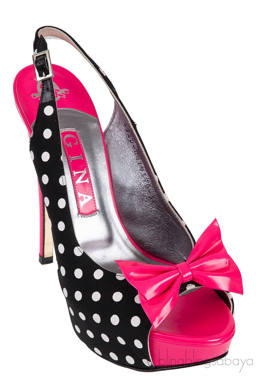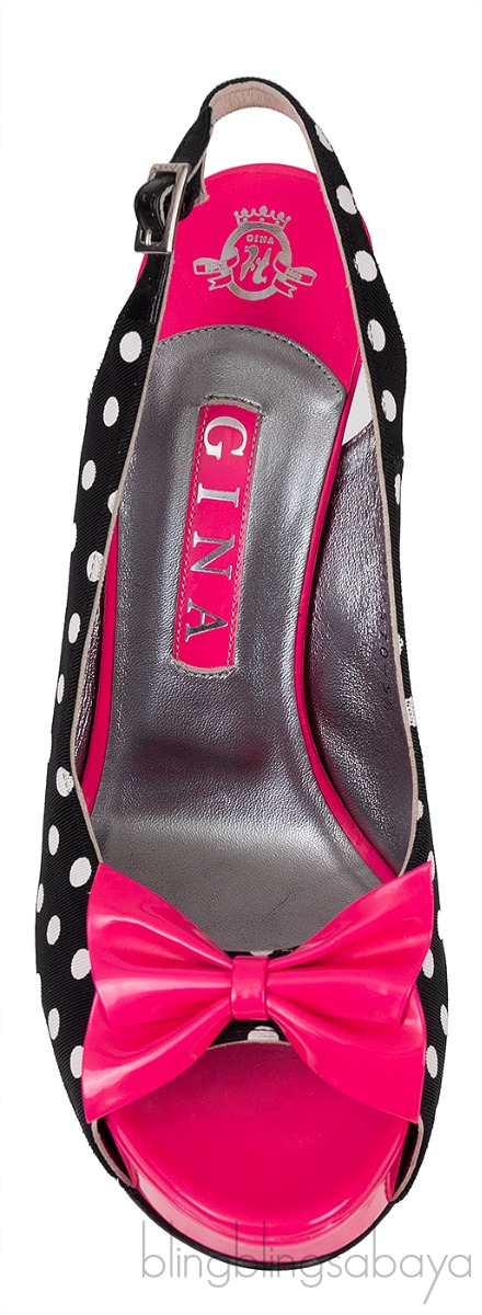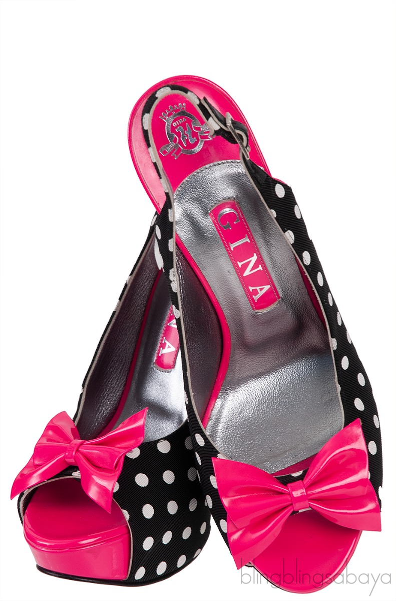 Gina Pink Bow Black Polka-dot Platform Slingback Shoes!