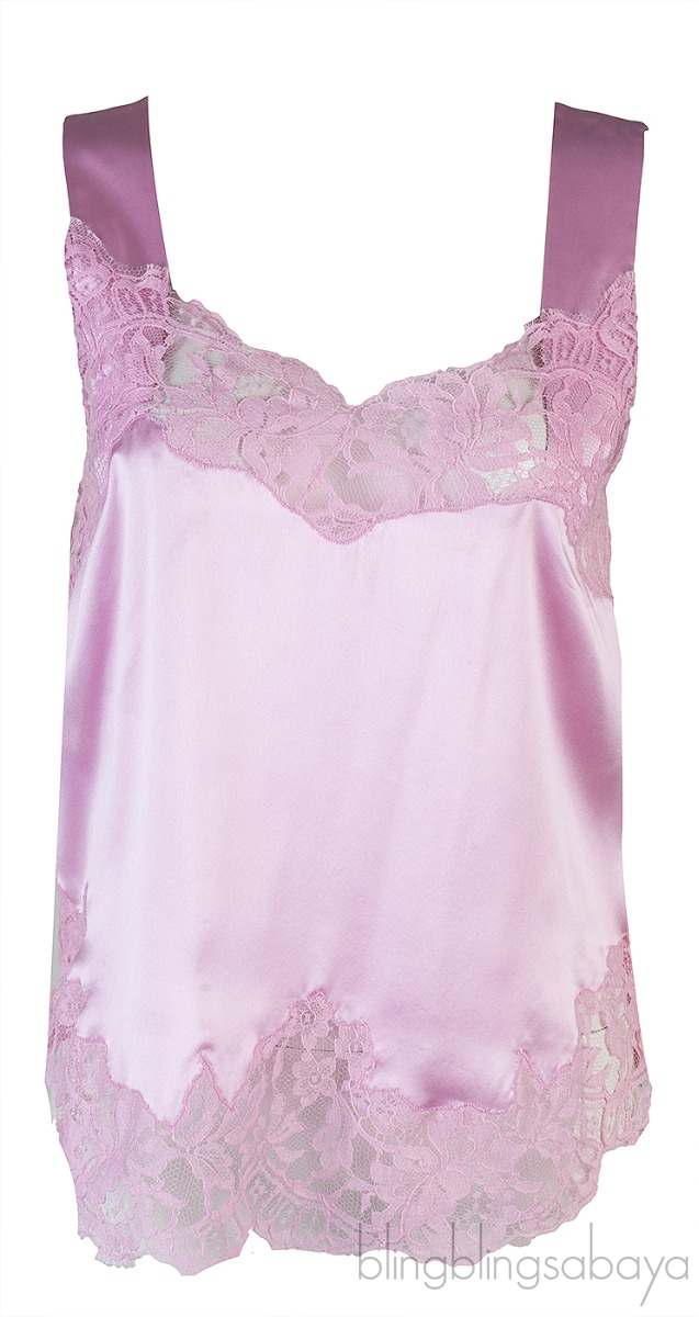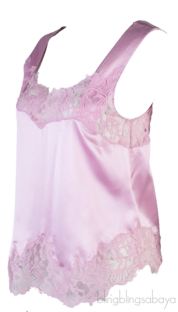 This Pink Lace Trim Top from Givenchy is crafted from 100% Silk; Lace 78% Cotton and 28% Polyamide. This top is in plain pink hue, wide shoulder straps, lace trim at neck and hemline.