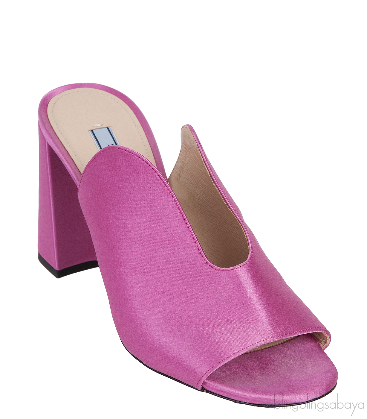 Pink Satin Chunky Heel Sabot Mules from PRADA!