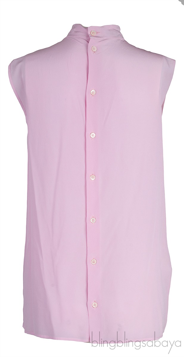 This Pink Sleeveless Blouse from Miu Miu is crafted from 100% Silk in pink color featuring a sleeveless style, button fastening at the back, and close neckline.
