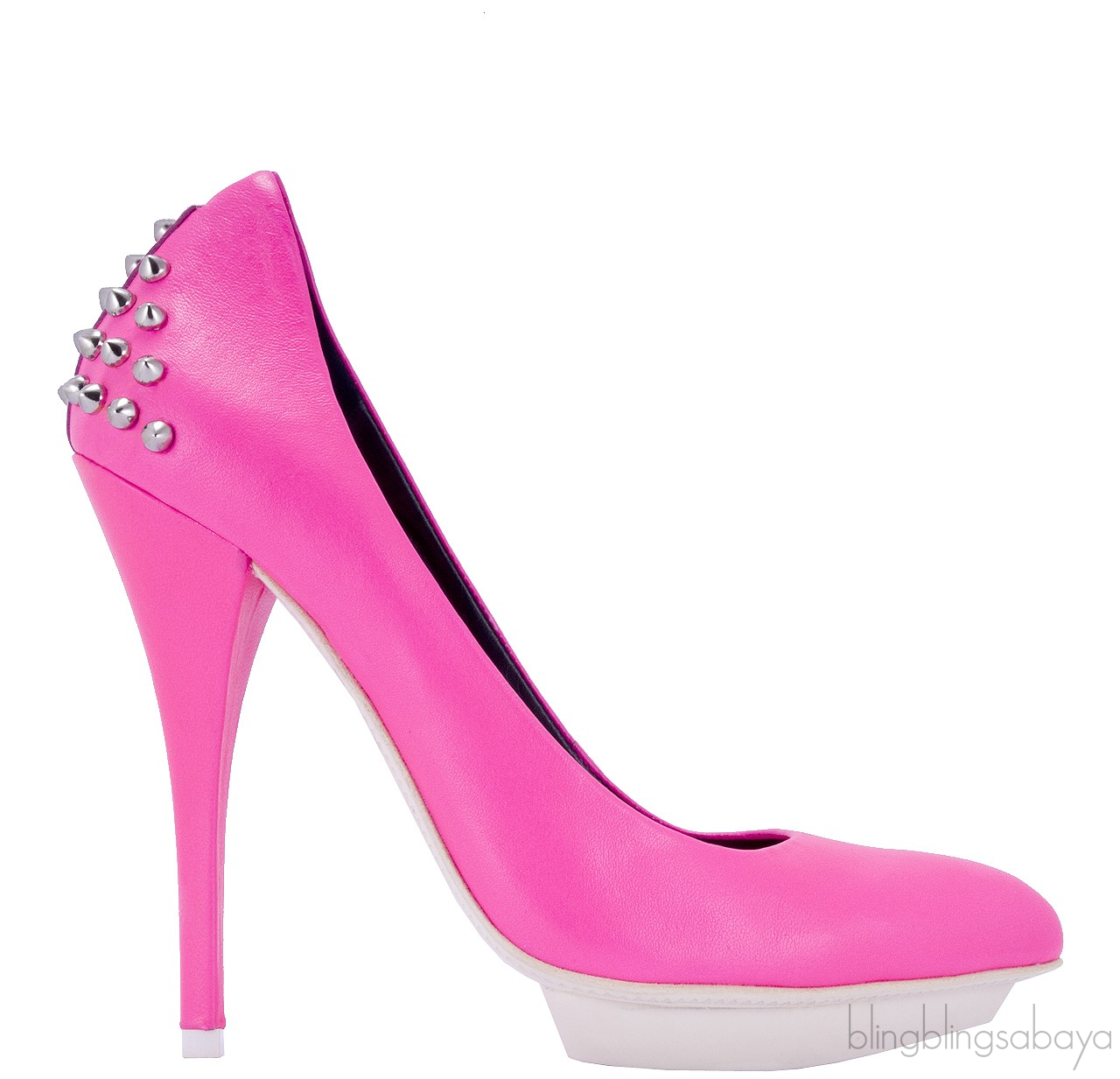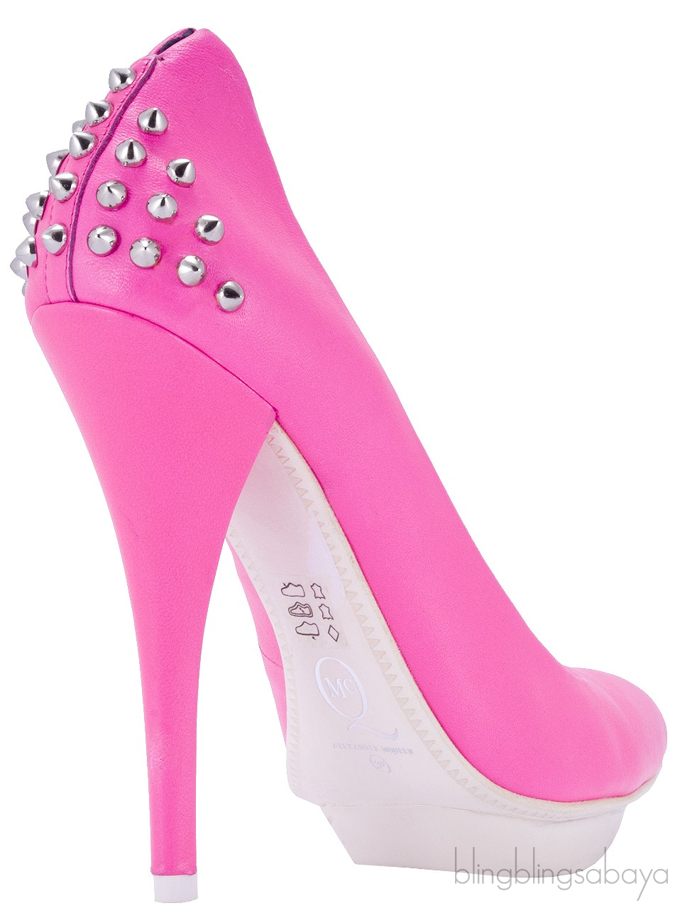 Pink Studded Neon Leather Pumps