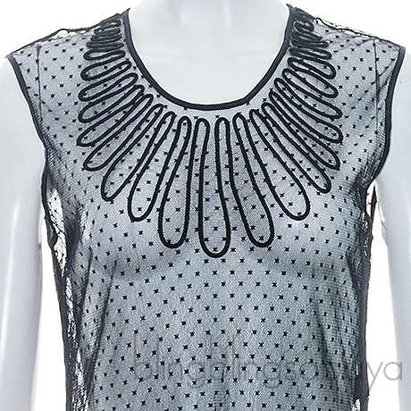 This Polka Dot Sheer Camisole Dress from La Perla is made if 80% Polyamide, 10% SIlk, 10% Elastane in black sheer fabric featuring a round neckline, sleeveless, button fastening at rear, polka dot design all -over and string pattern design around the neck.