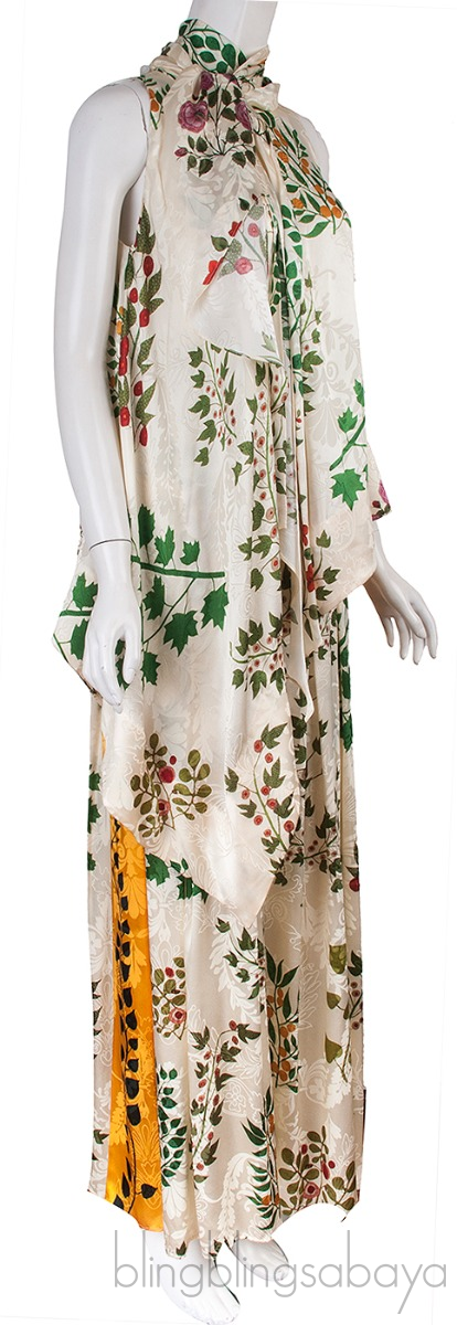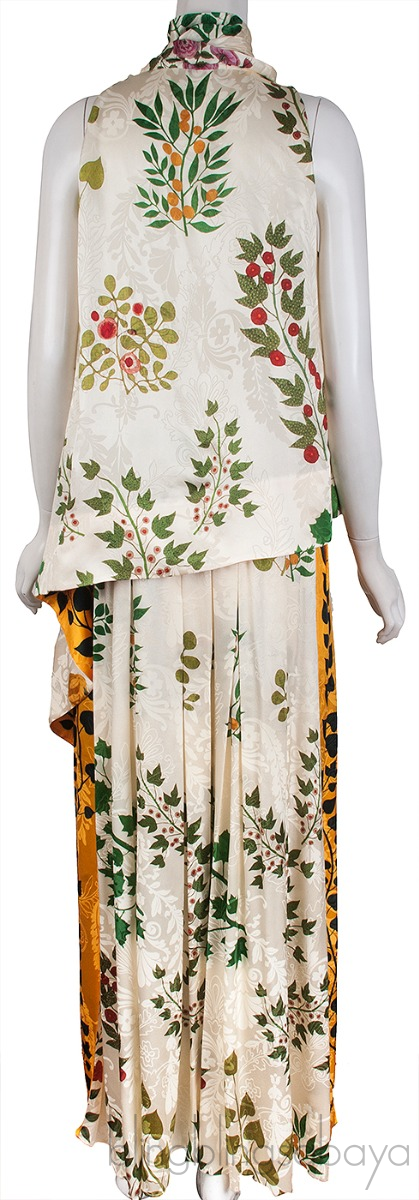 This Printed Halter Blouse & Wide Leg Trouser from Oscar dela Renta is crafted from 100% Silk fabric. Top features a halter top design, sleeveless, button fastening at the close neckline, self-tie fastening at neck and asymmetric hemline.