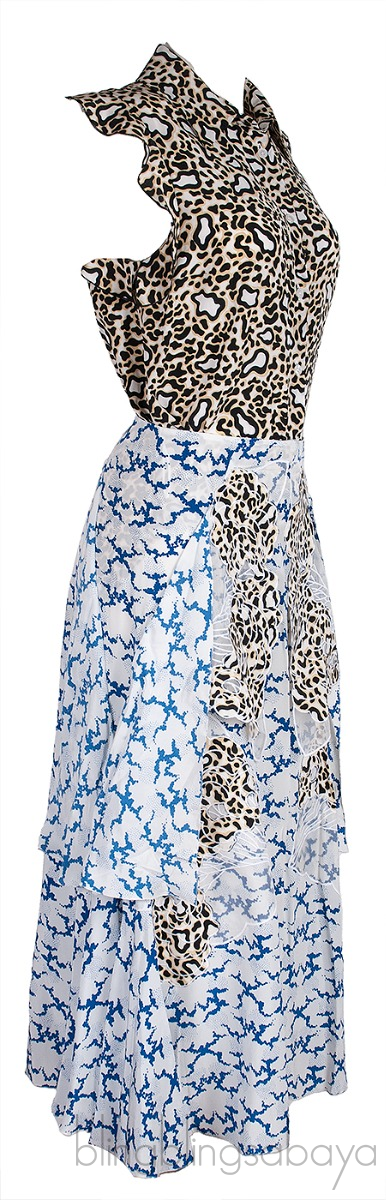 Printed Sleeveless Top & Skirt Pair from Stella McCartney. Top is crafted from 100% Silk fabric in multicolor hue featuring a classic collar, button fastening at front, sleeveless with ruffle detailing and oval hemline.