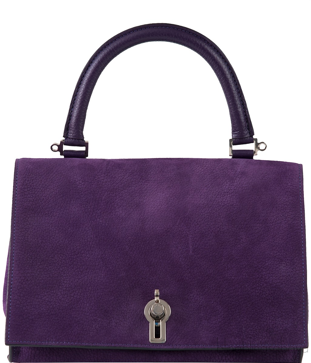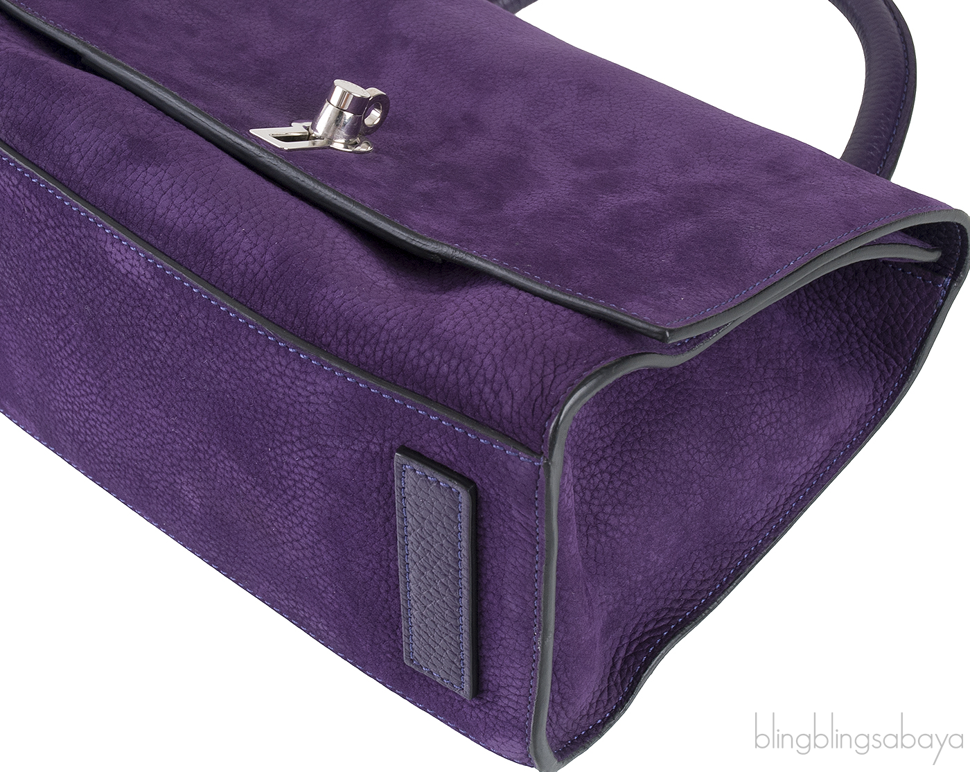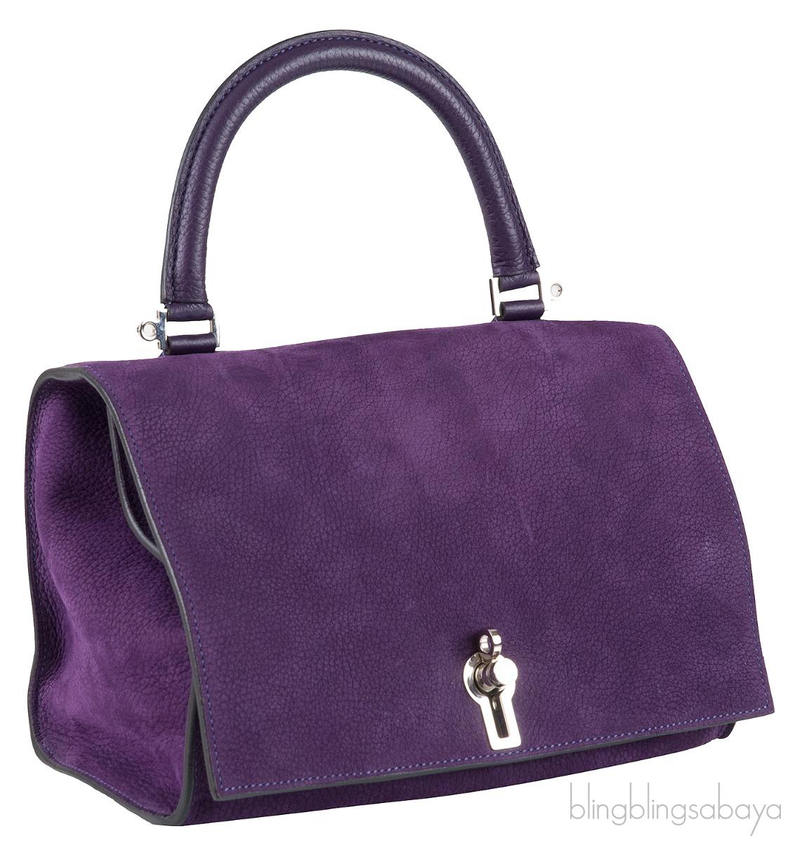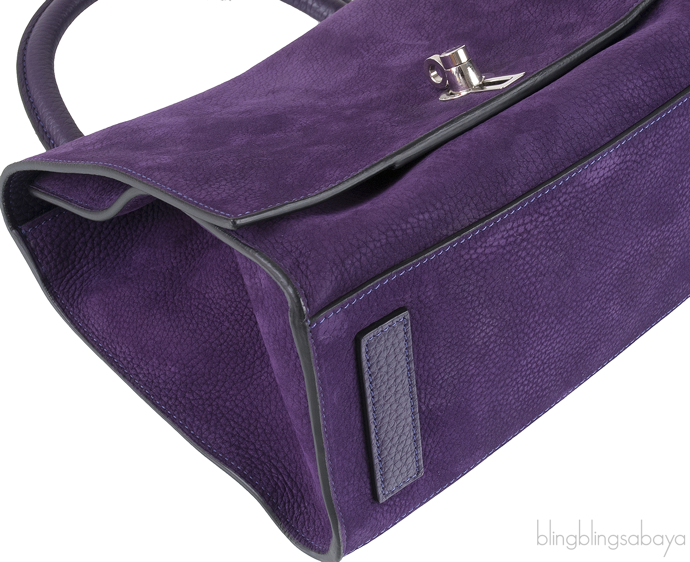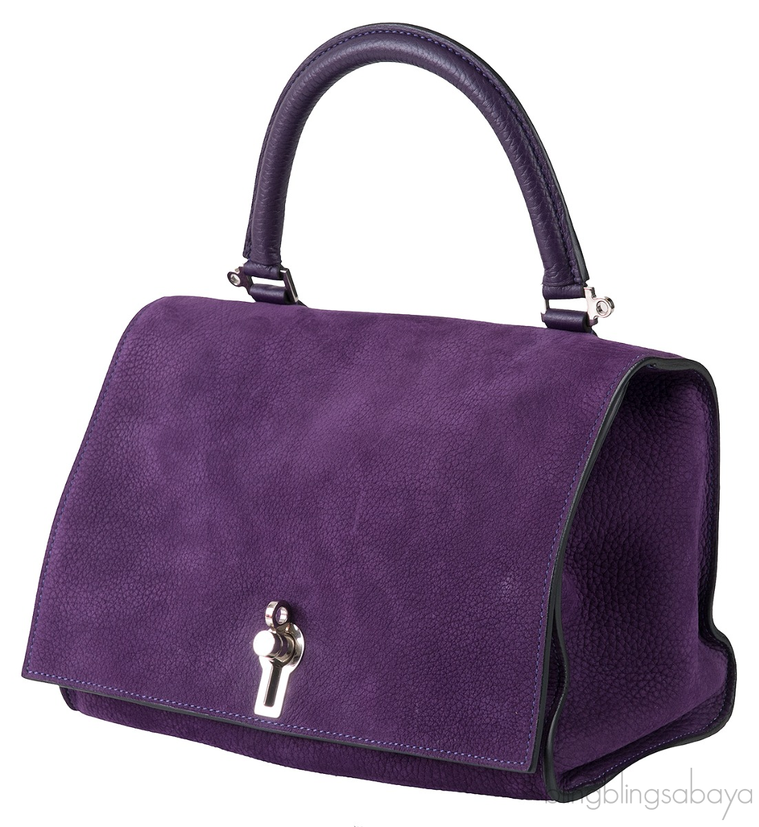 This Purple Danse Bag PM from Moynat is crafted from bi-material the perfect mix ofTaurillon GexandTaurillon Nubuk otherwise known as suede accented with paladium hardware. This versatile soft bag features a flap cover secured on a silver turn closure. Interior is fully lined with goat skin leather in contrasting orange hue and has one patch pocket inside.