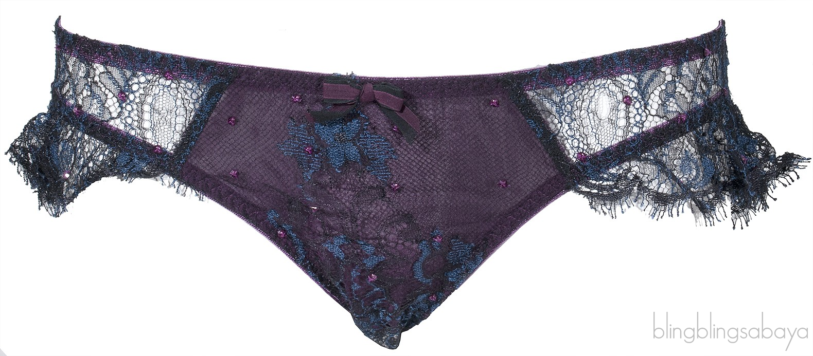 Purple Lace Brief is crafted from black & Blue French lace with scalloped edges intricate with purple beads topped with pretty satin bow.