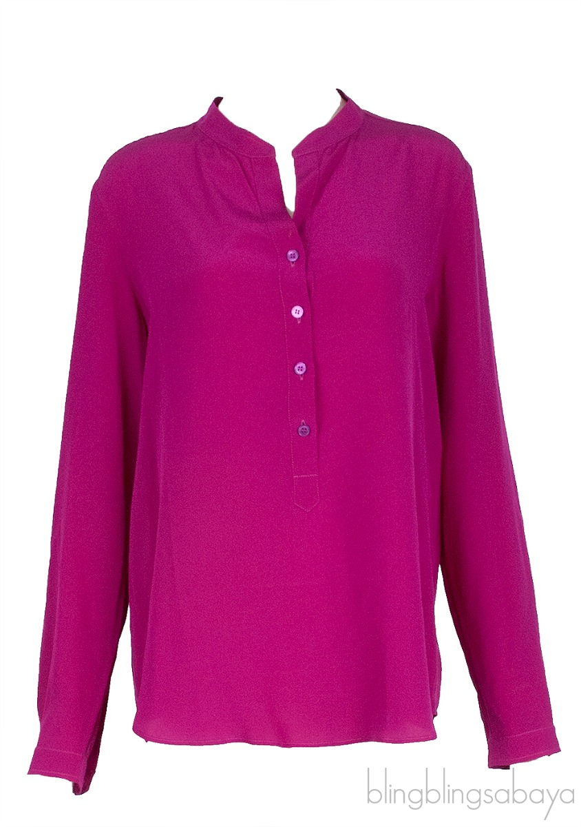 This Purple Long Sleeve Shirt from Stella McCartney is crafted in 100% Silk fabric in purple hue. This top features a round v-neckline, partially buttoned at front, long sleeves with buttoned cuffs and pull-over.
