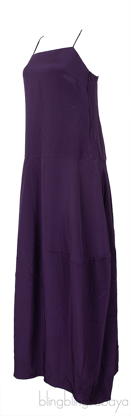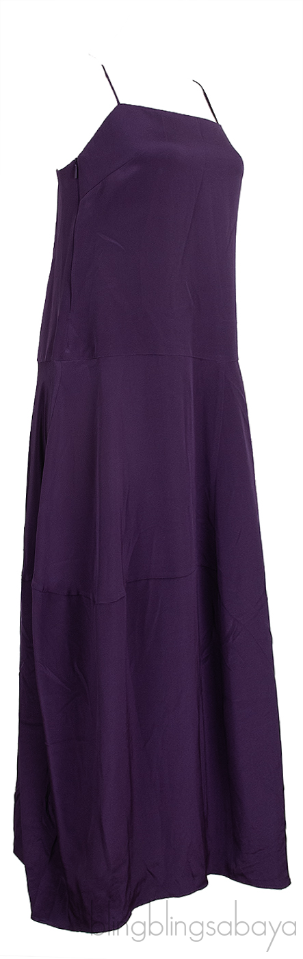 This Purple Sleeveless Dress from Tibi is crafted from plain purple fabric featuring a straight neckline, spaghetti strap, side zip fastening, pull-over style, side pocket and mid-length hemline.