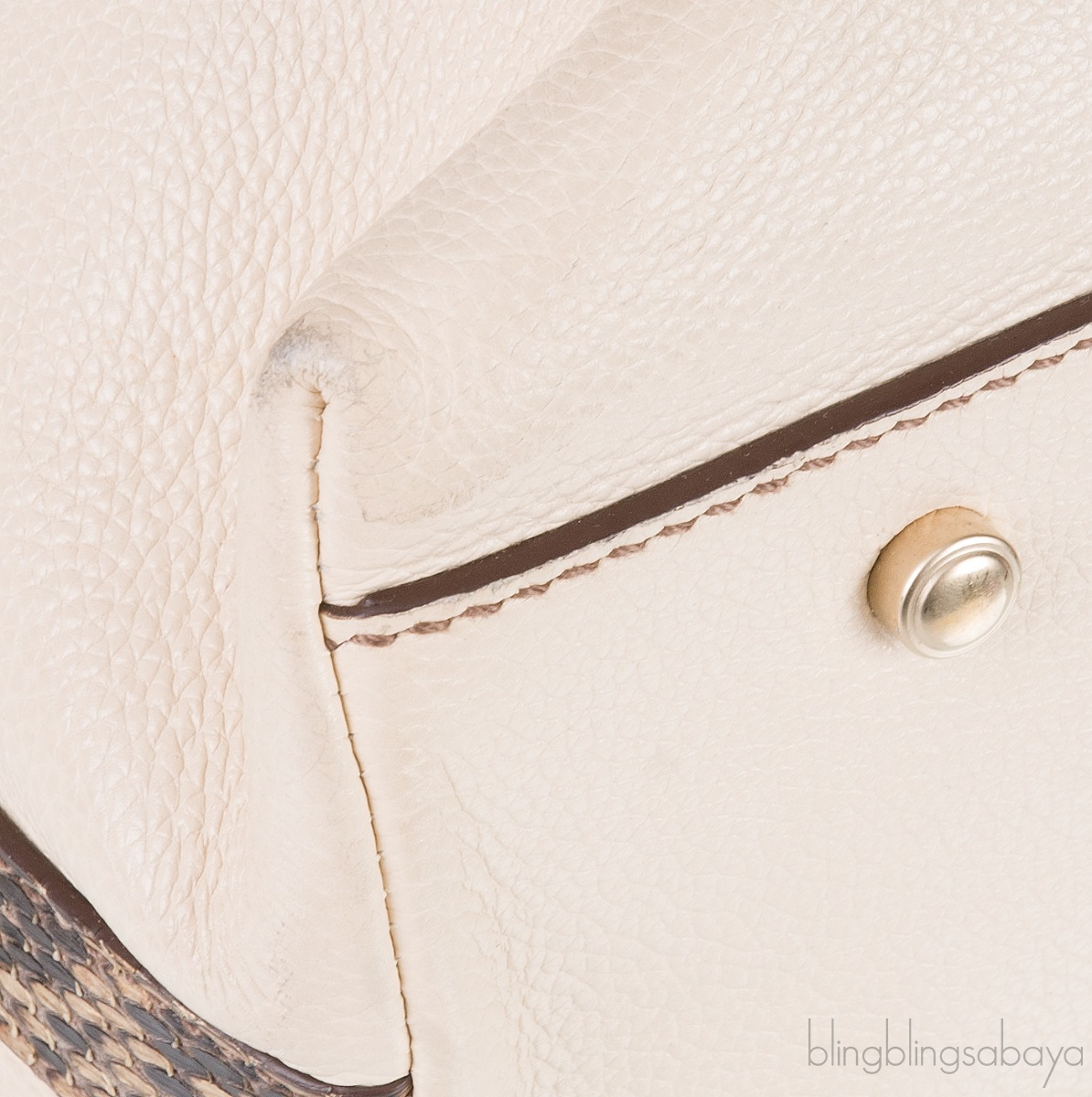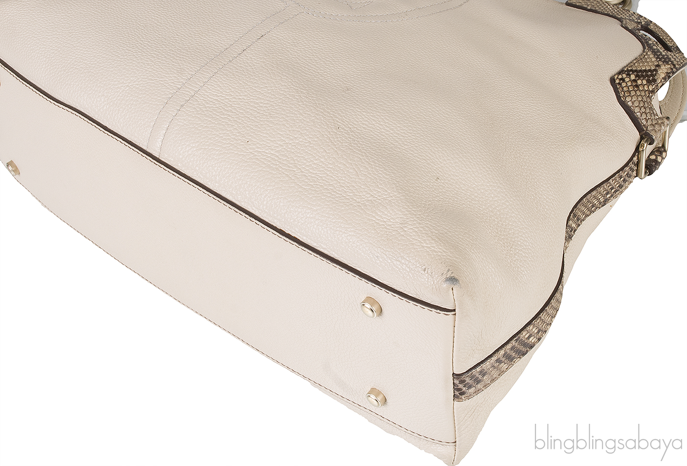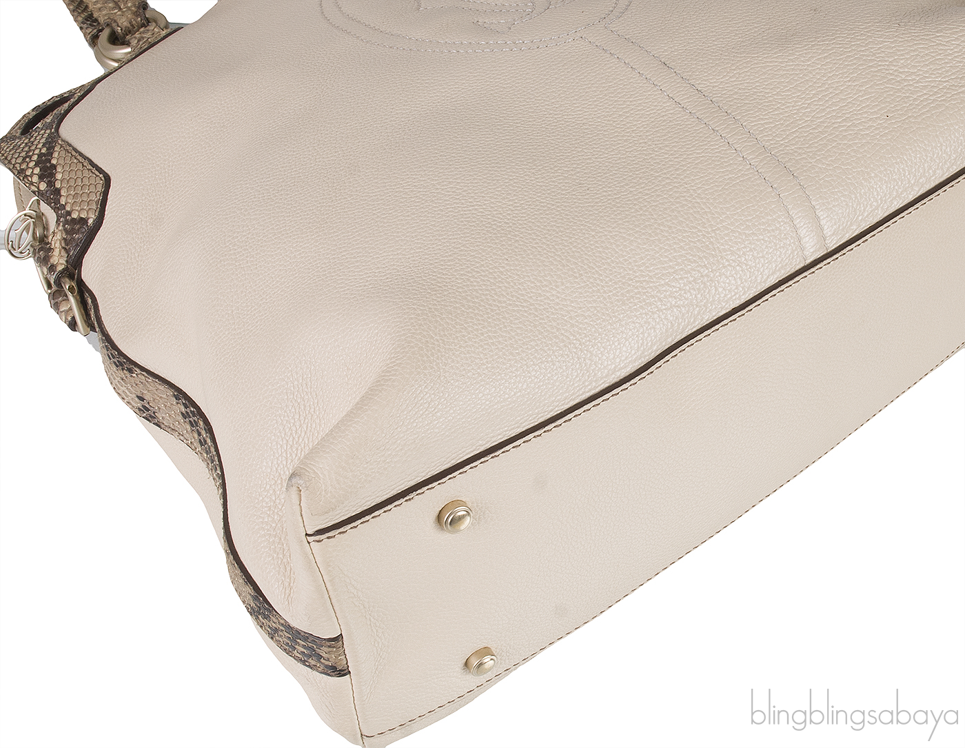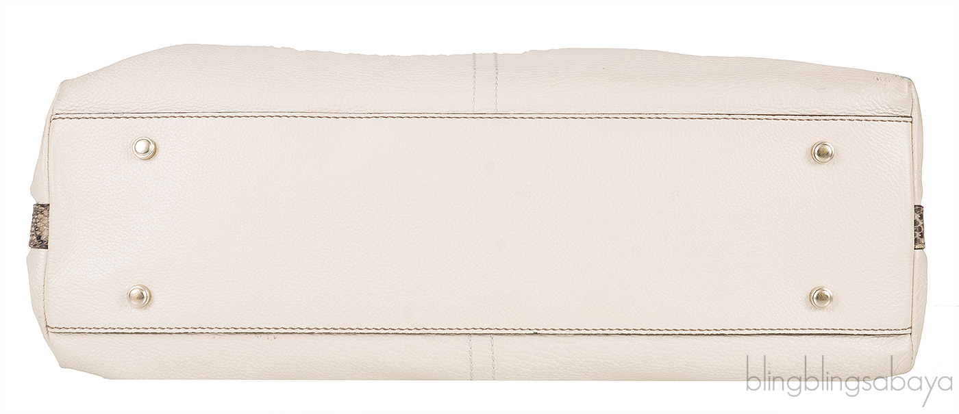 This Python Trimmed Marcello De Cartier Bag from Cartier is crafted from off-white leather trimmed with natural python leather and accented with matte light gold hardware.