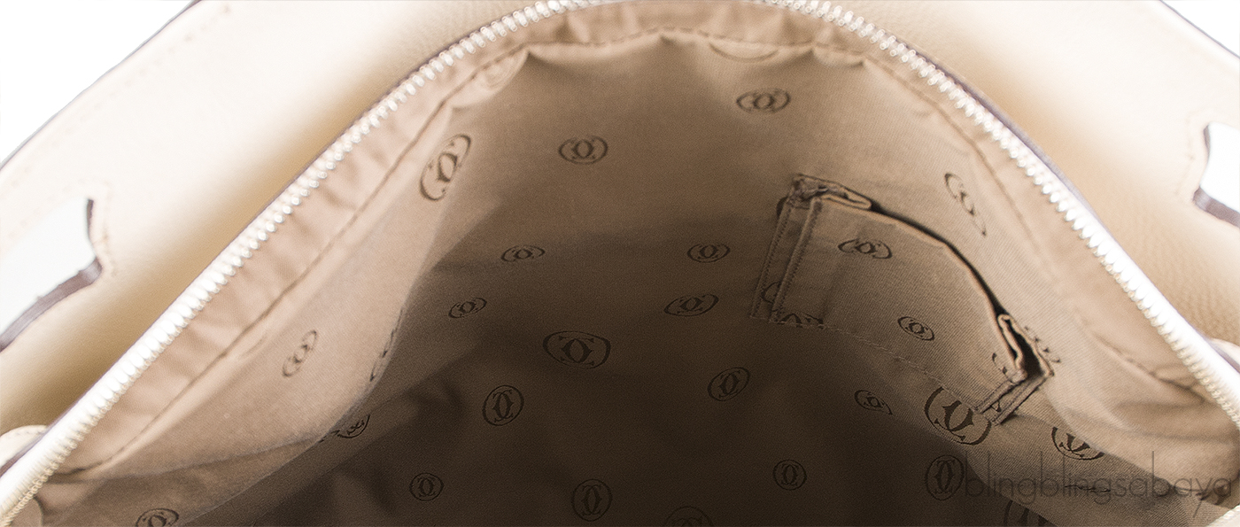 This bag features a quilted cc logo2 at front and has two dual top handle and optional shoulder strap. It has a top zip opening that gives access to a roomy interior fully lined with brown canvas and has one zip pocket inside.