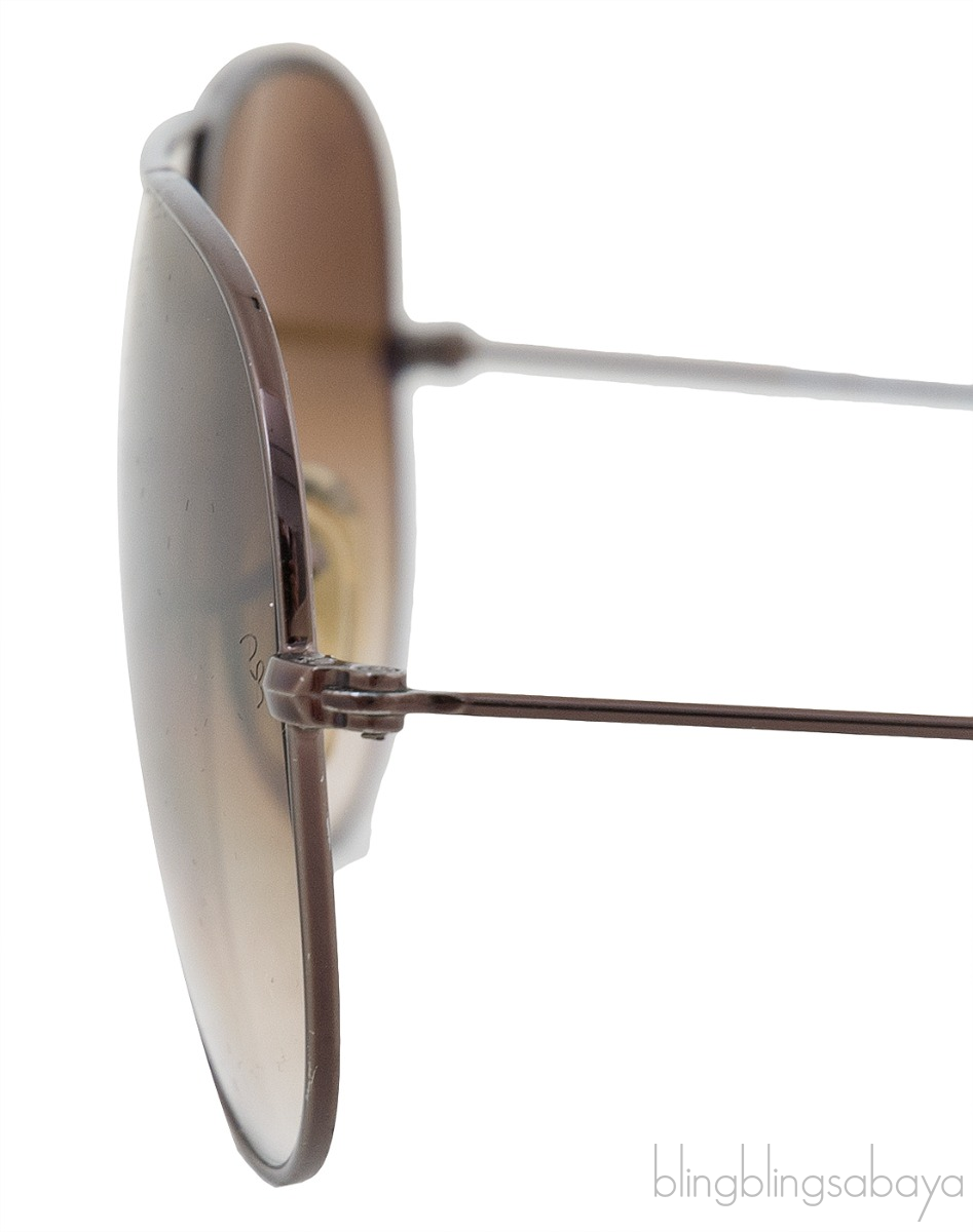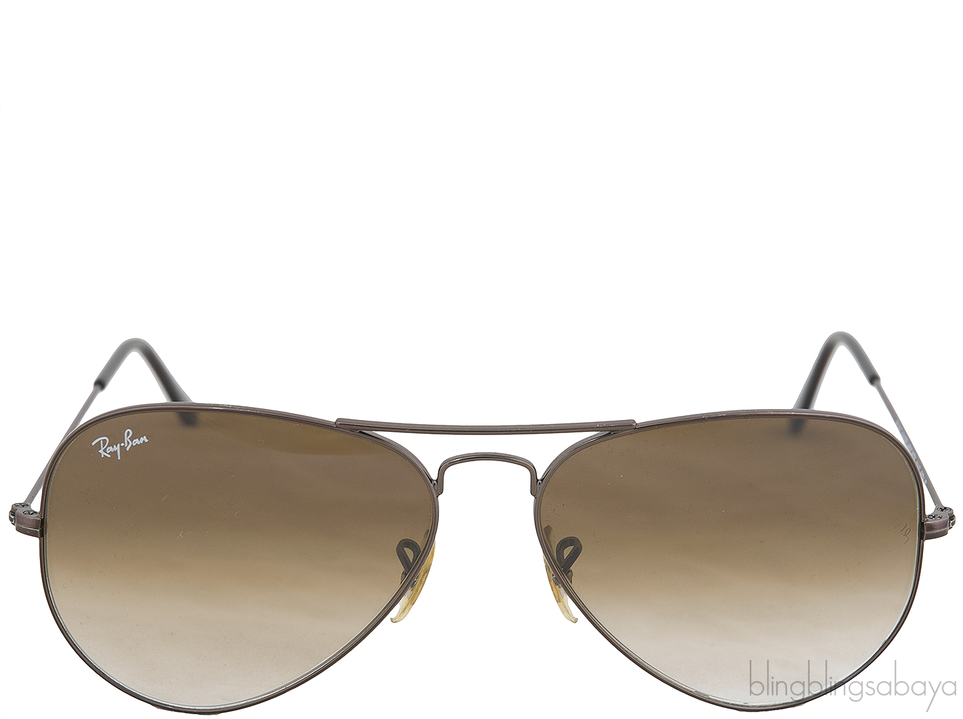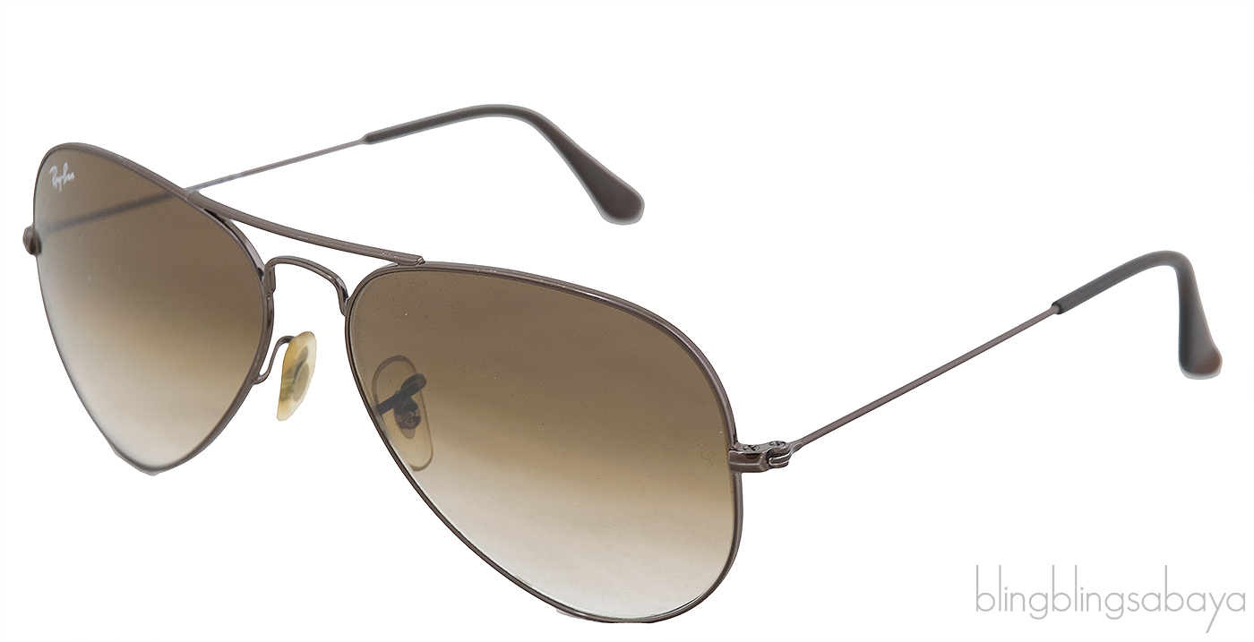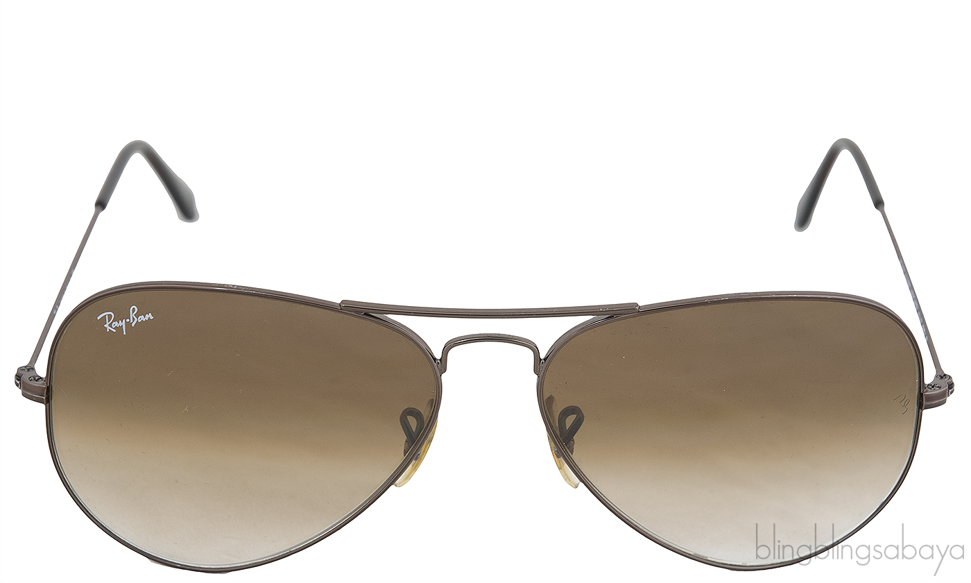 This RB 3025-014/51 Aviator Large Metal Sunglasses from Ray-ban features a gun metal frame with brown gradient lenses, nose pads and white acetate temple tips.