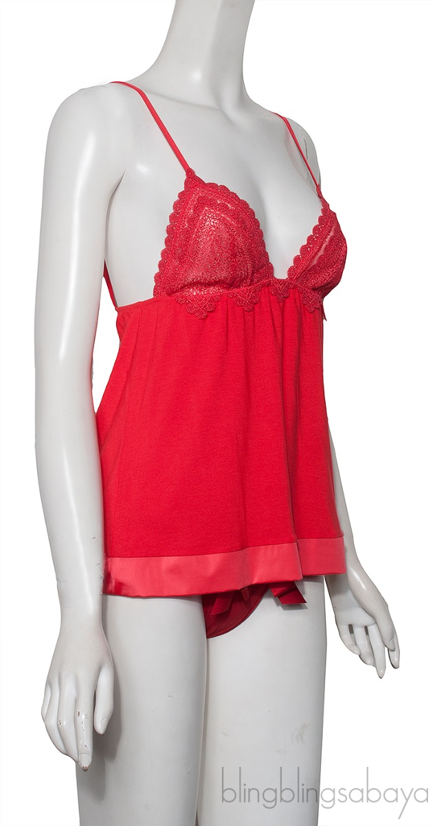 This Red Camisole Set from La Perla comes in camisole top & thongs. Top is crafted from 50% Polyamide,30% Modal, 15% Elastane and 5% Polyester in red hue featuring semi-sheer upper with v-neckline and adjustable shoulder strap. Sexy thongs features an elastic waistline and box detailing at front.