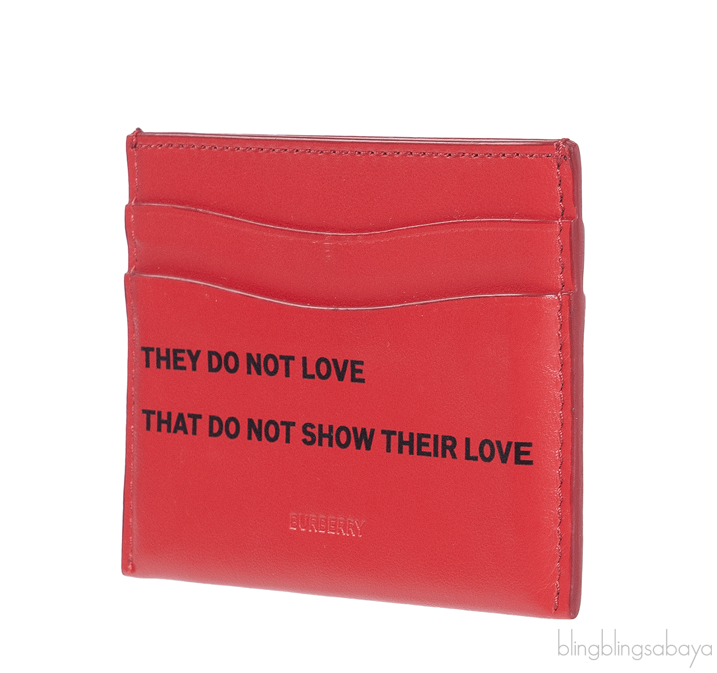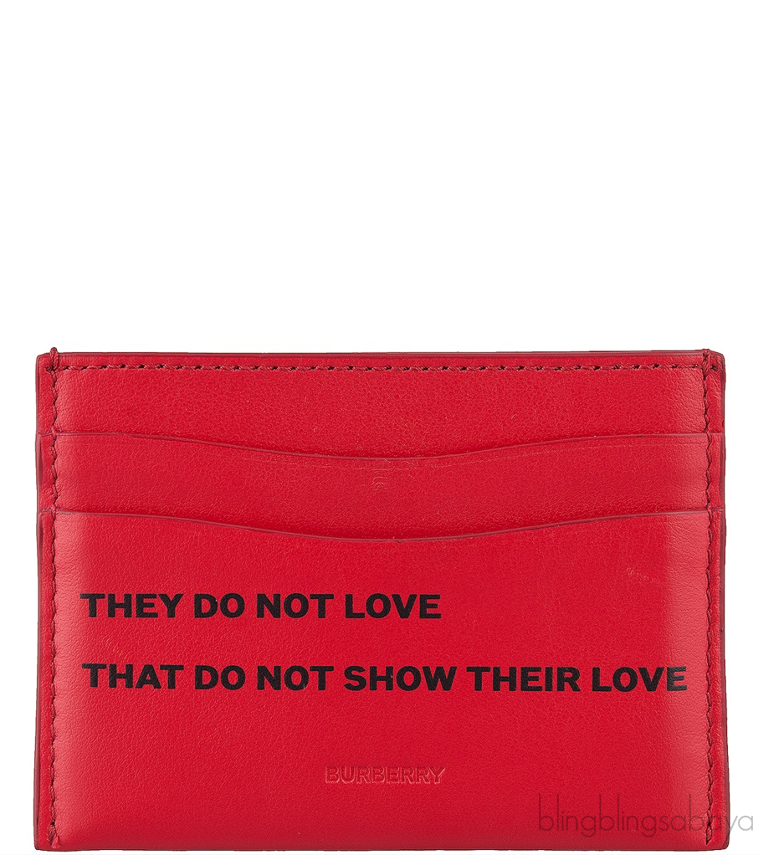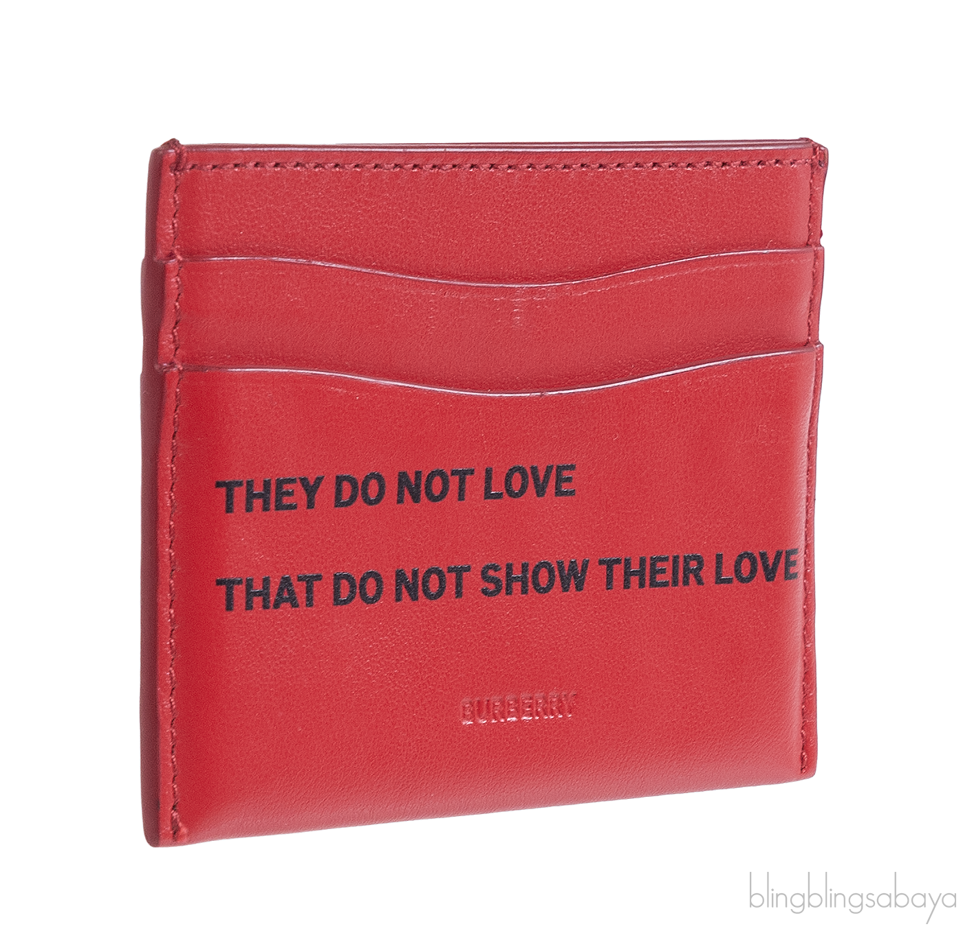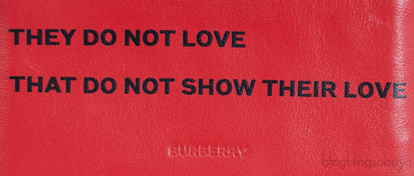 This Red Card Holder from Burberry is crafted from red leather featuring a six credit card slots and major pocket at the center. "They do not love that do not show their love" is printed at the front.