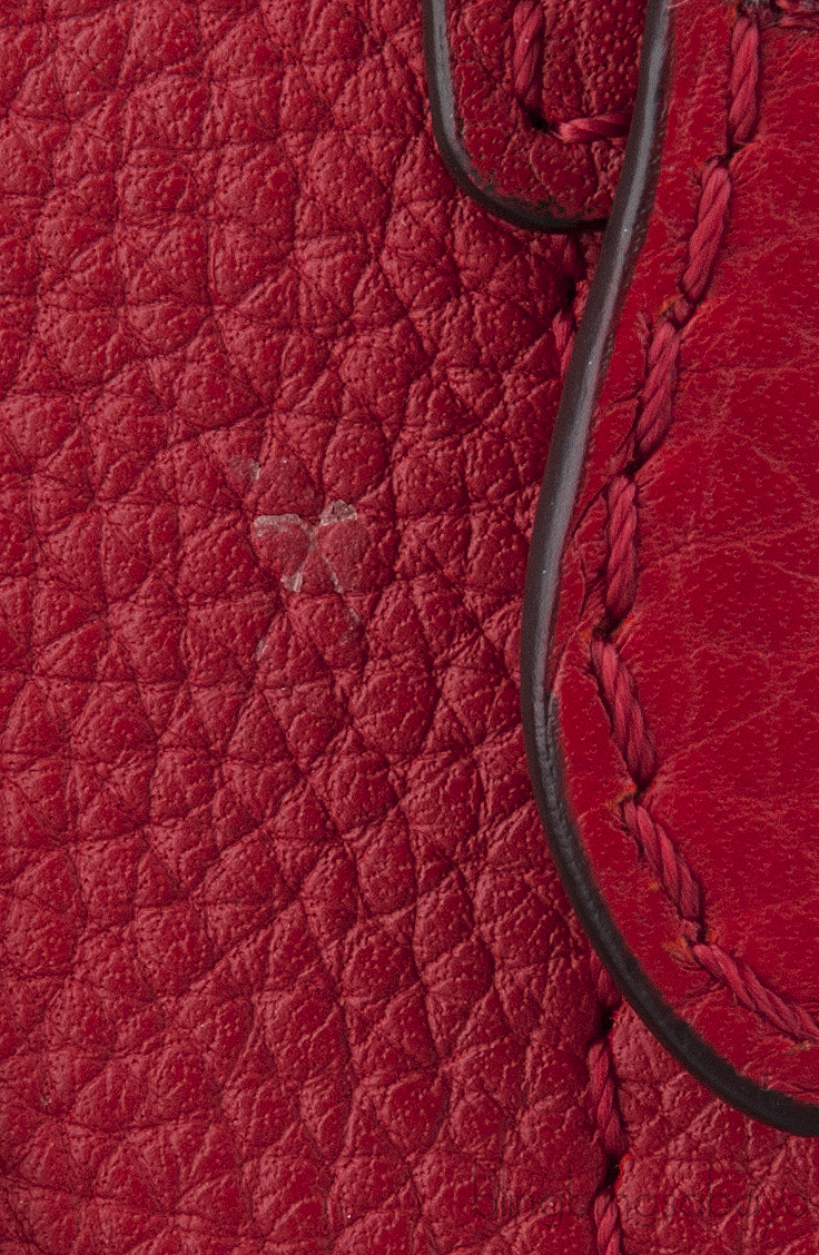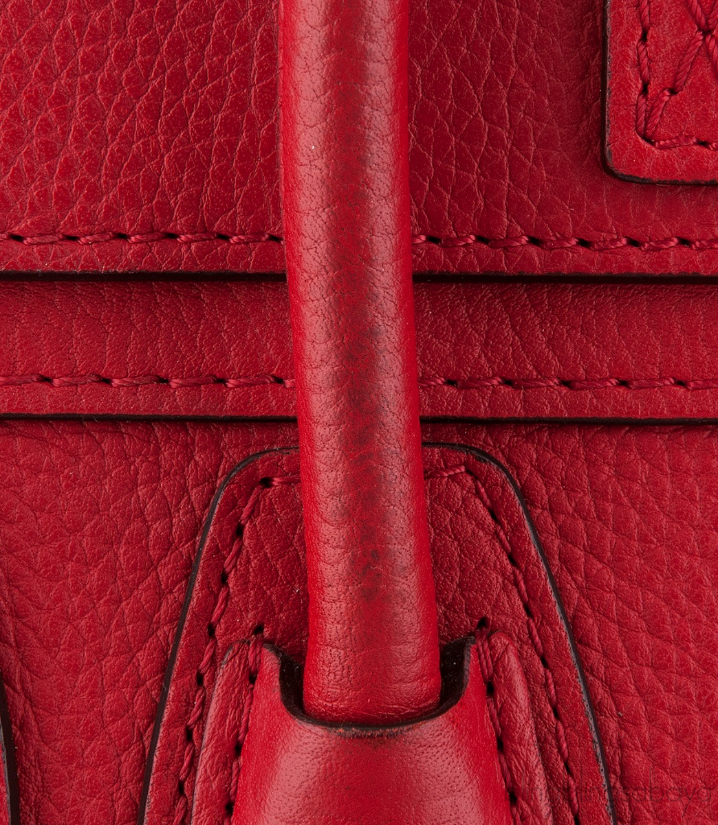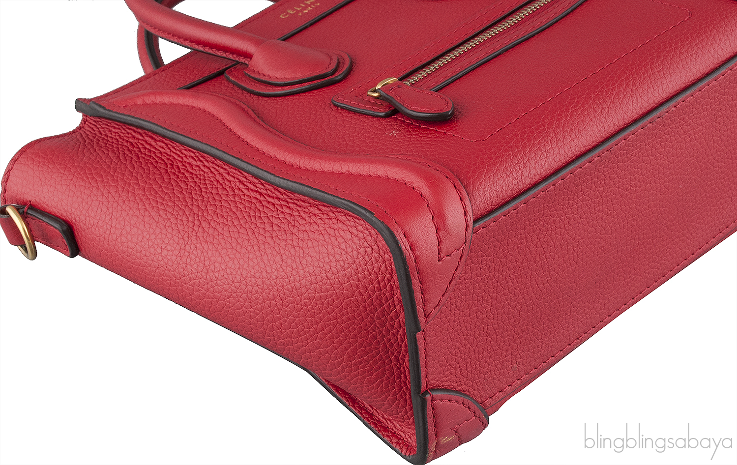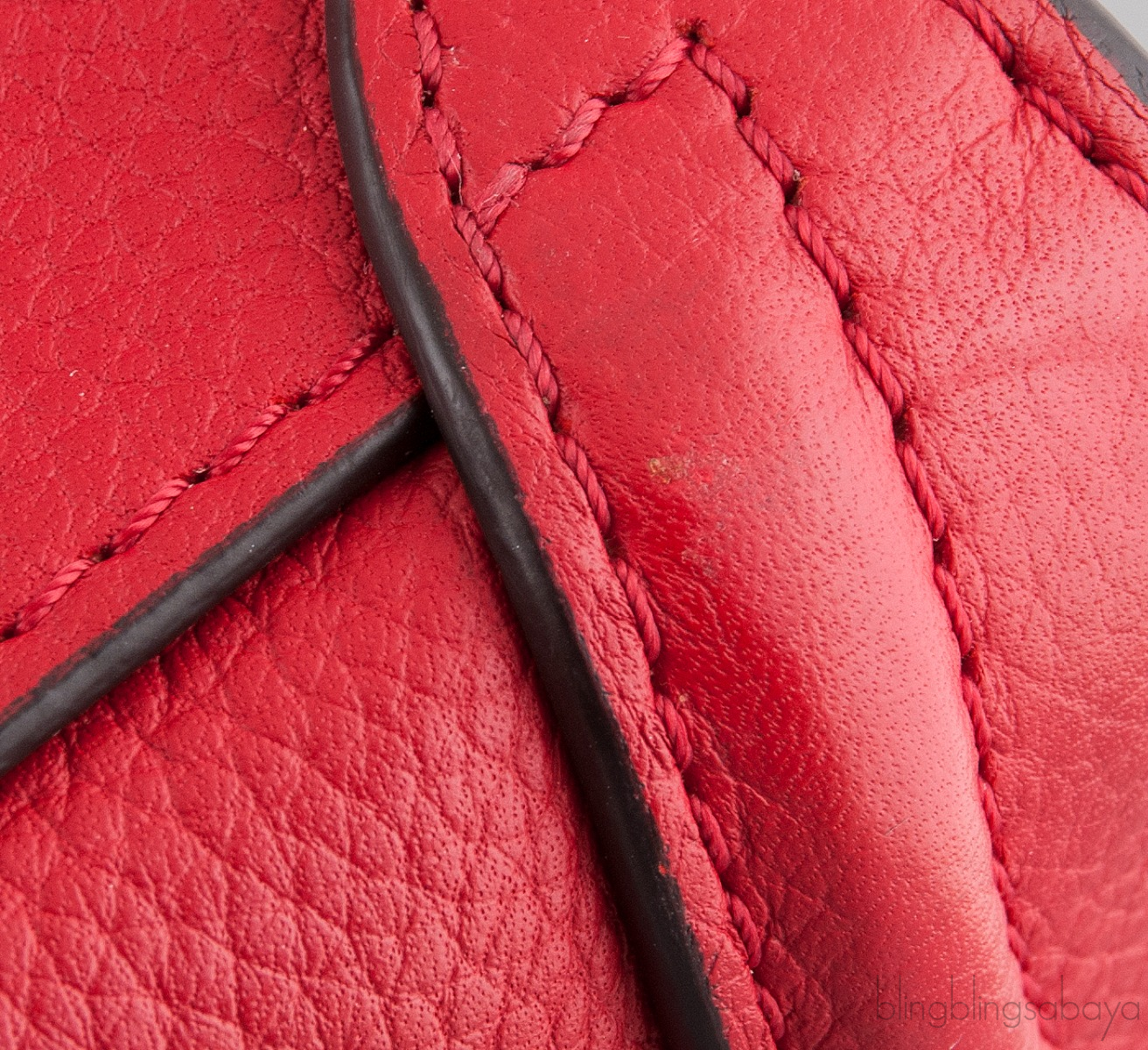Add a dash of color to your wardrobe with this Nano Luggage Red color from Celine. Crafted in eye catching red grainy leather with a Gold Hardware. It has a vertical ridge on both sides that adds a stunning characteristic and has frontal zip.