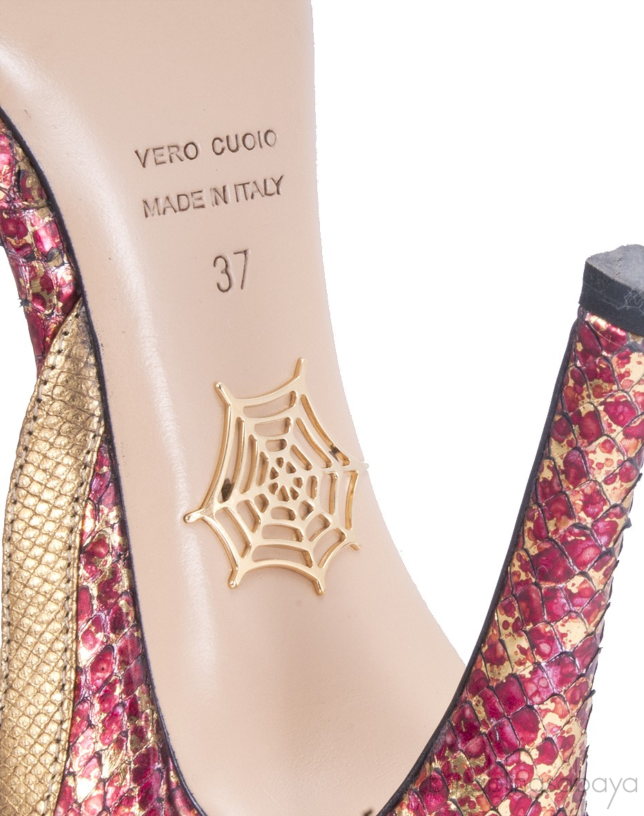 This extra ordinary Red Serpent Half d'Orsay Pump from Charlotte Olympia is crafted in metallic red snakeskin leather with metallic gold serpent design around the collar. This Red Serpent Half d'Orsay Pump features a 4 inches covered heel, pointed toe and leather lined insole and sole.