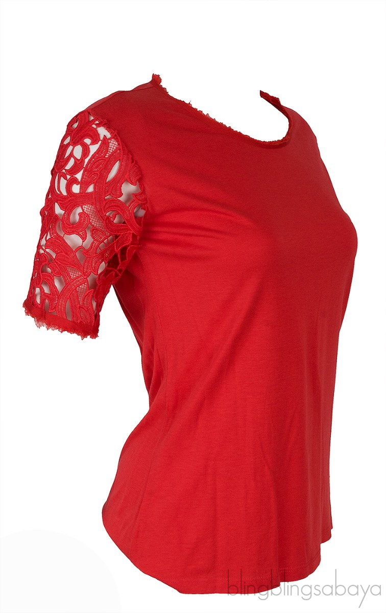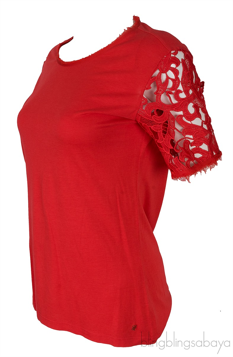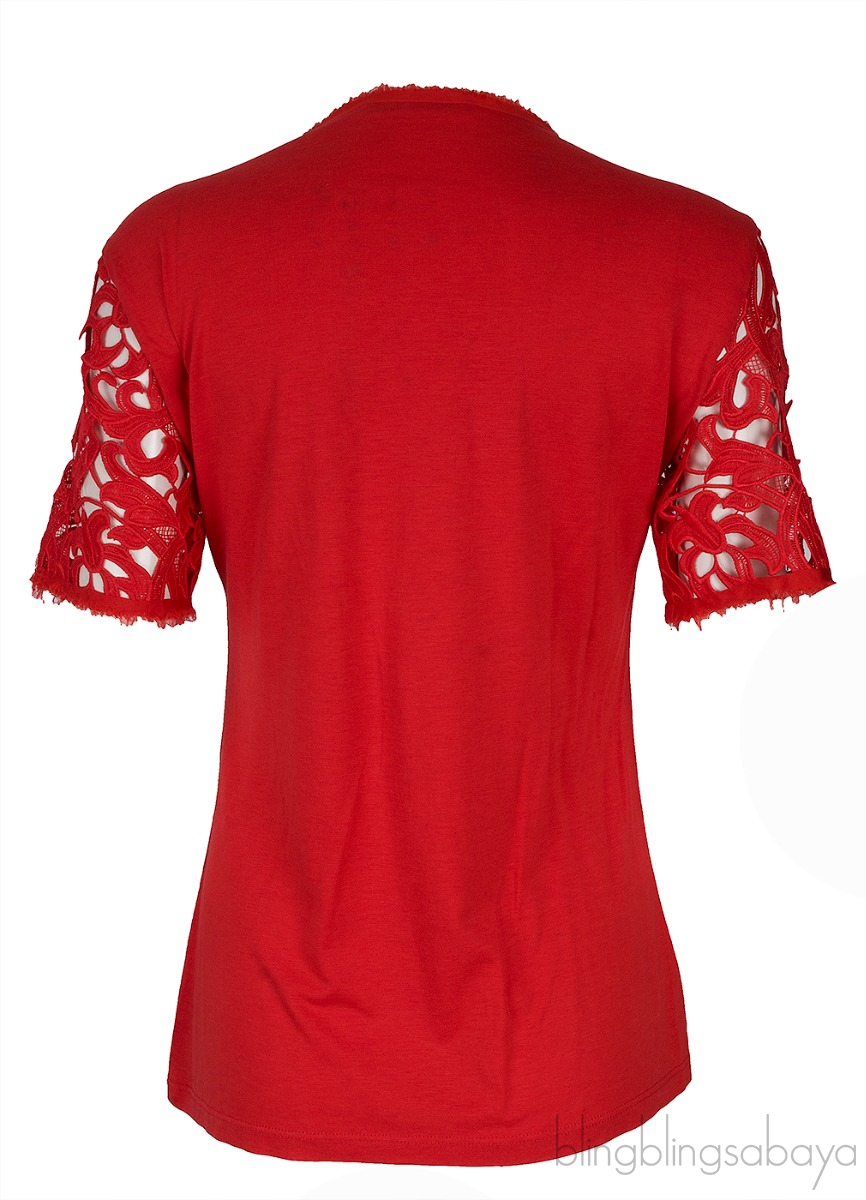 Red T-shirt with Lace Sleeves from Carolina Herrera!