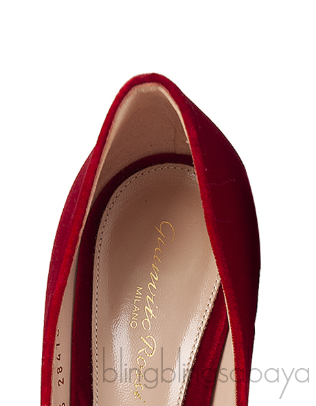 Red Velvet Pointed Toe Heels from GIANVITO ROSSI!