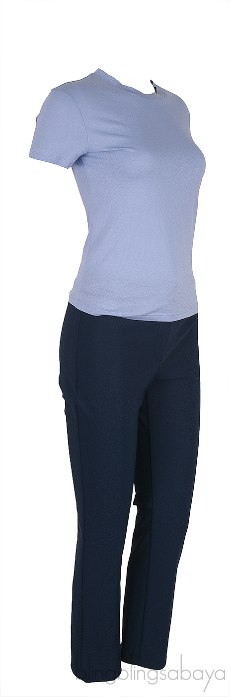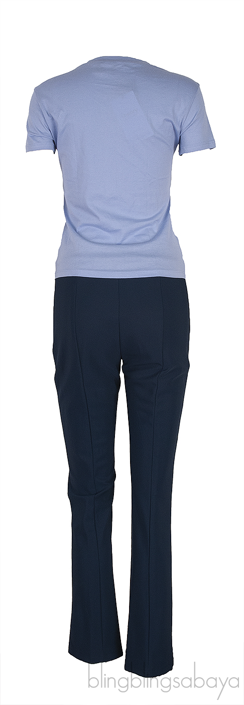 Regatta Tiny T-shirt & Dark Blue Stretch Trouser from Theory! This Regatta Tiny T-shirt is crafted from pastel blue fabric featuring a round neckline. short sleeves and pull-over. Trouser is crafted from polyester and elastane fabric in dark blue featuring a stretch fabric, zip and hook fastening at waist.