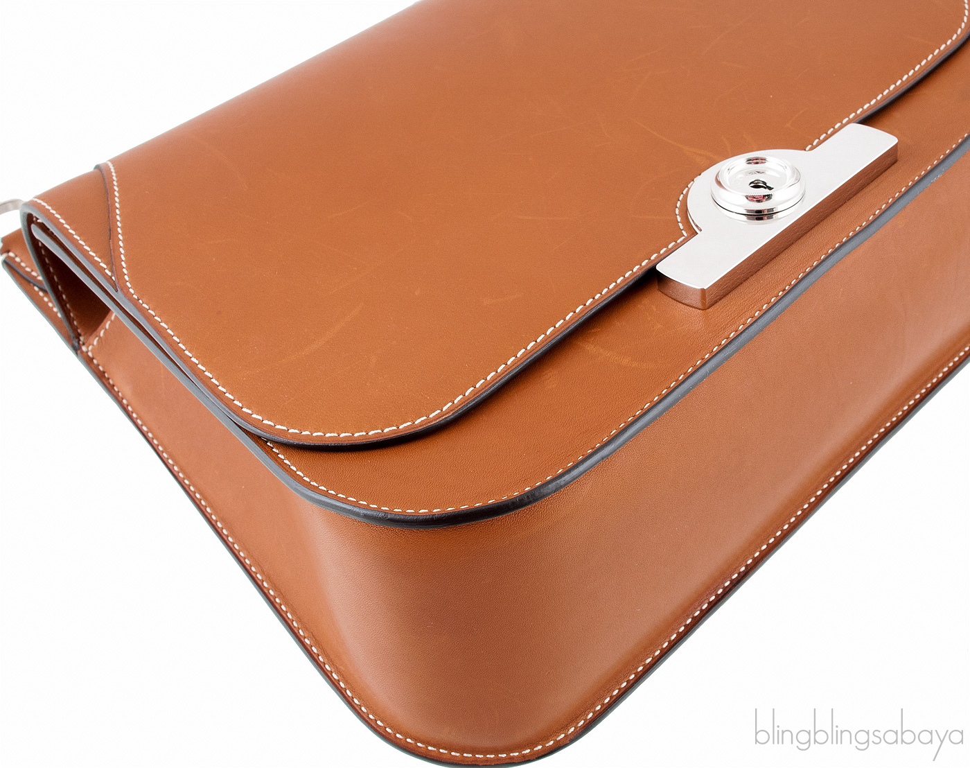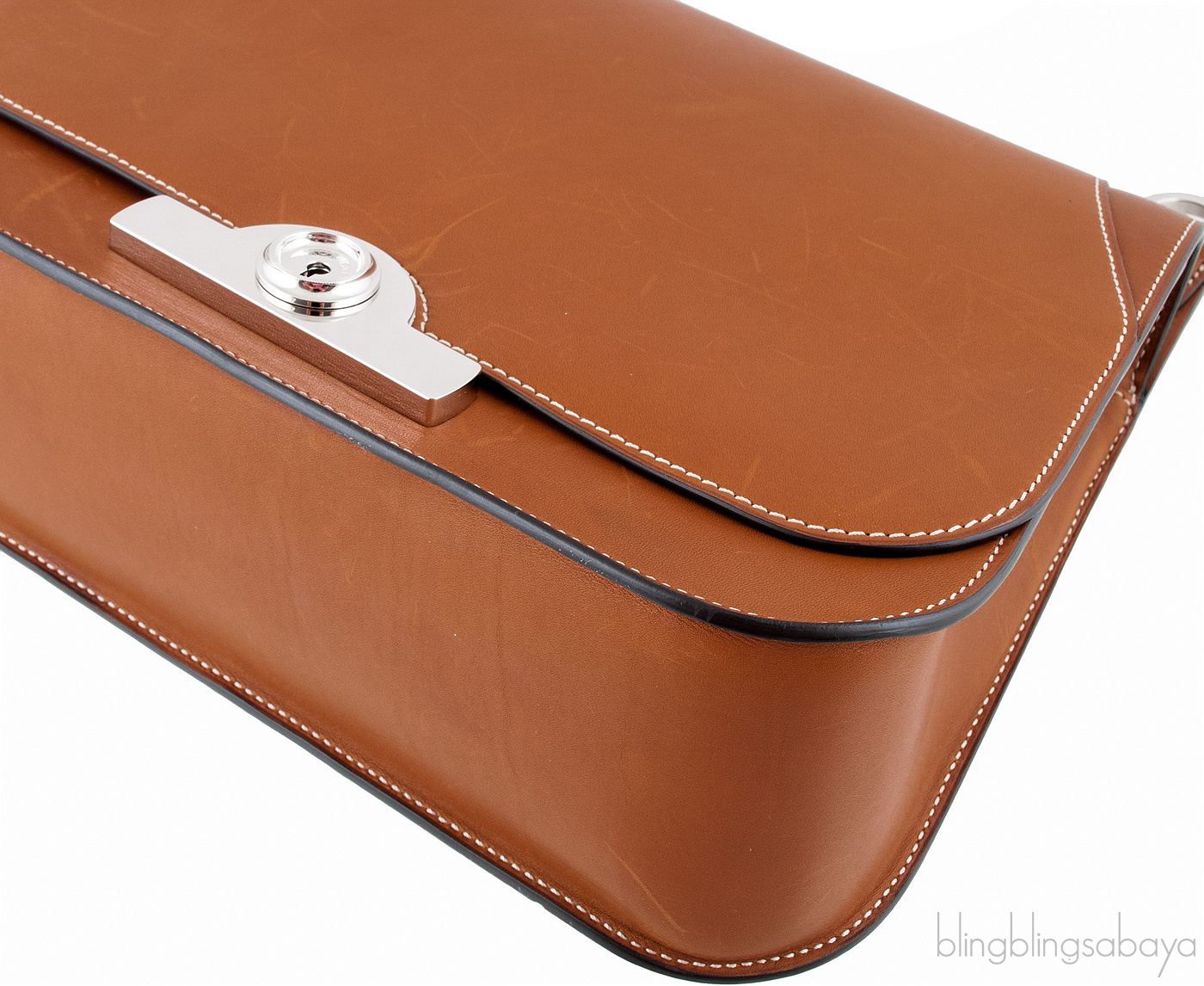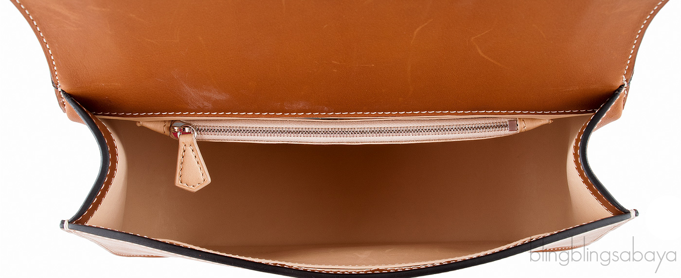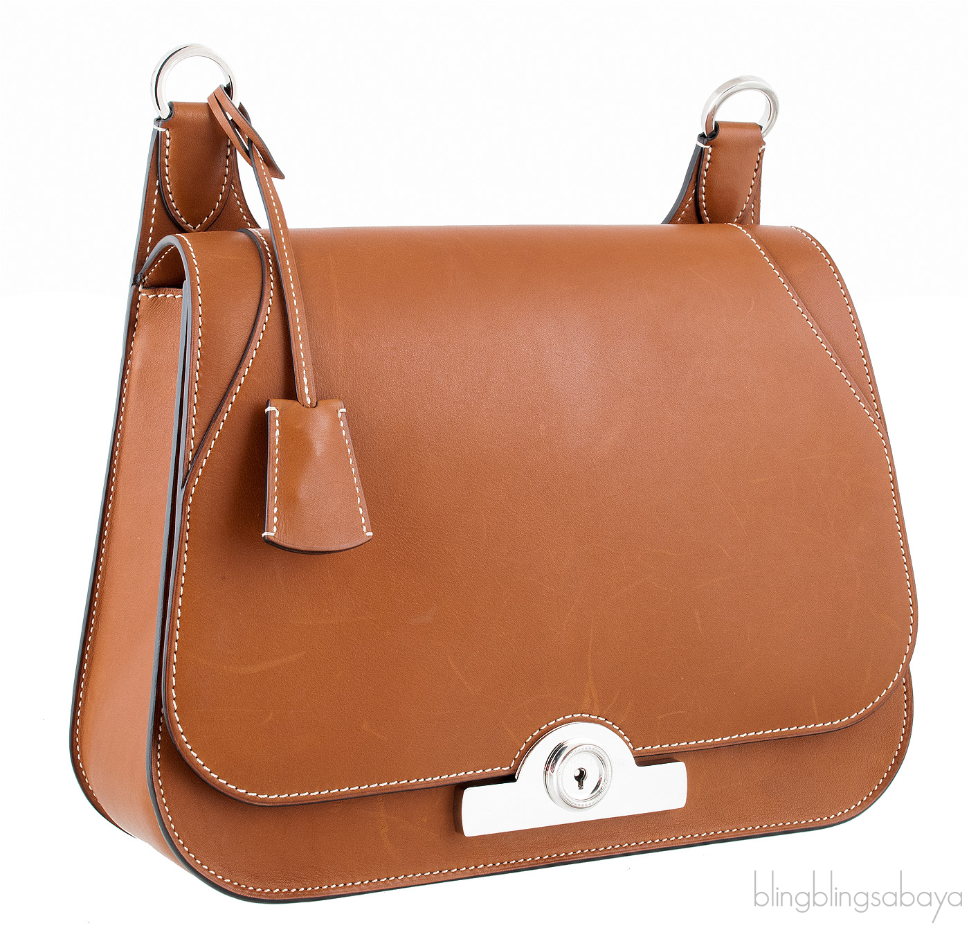 This Rejane Saddle Bag from Moynat features a structured city bag in natural calf leather accented with silver hardware. This stunning piece features a front patented lock specific to Moynat with detachable and adjustable shoulder strap. Flap cover is lined with coordinating leather while the roomy interior is fully lined with beige leather and has wall zip compartment inside.