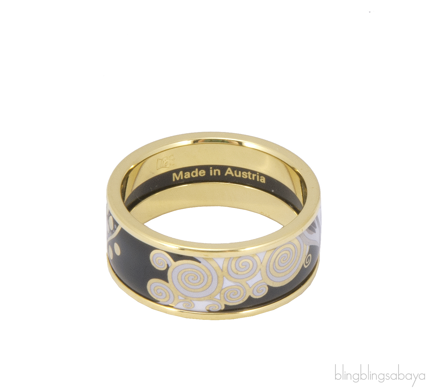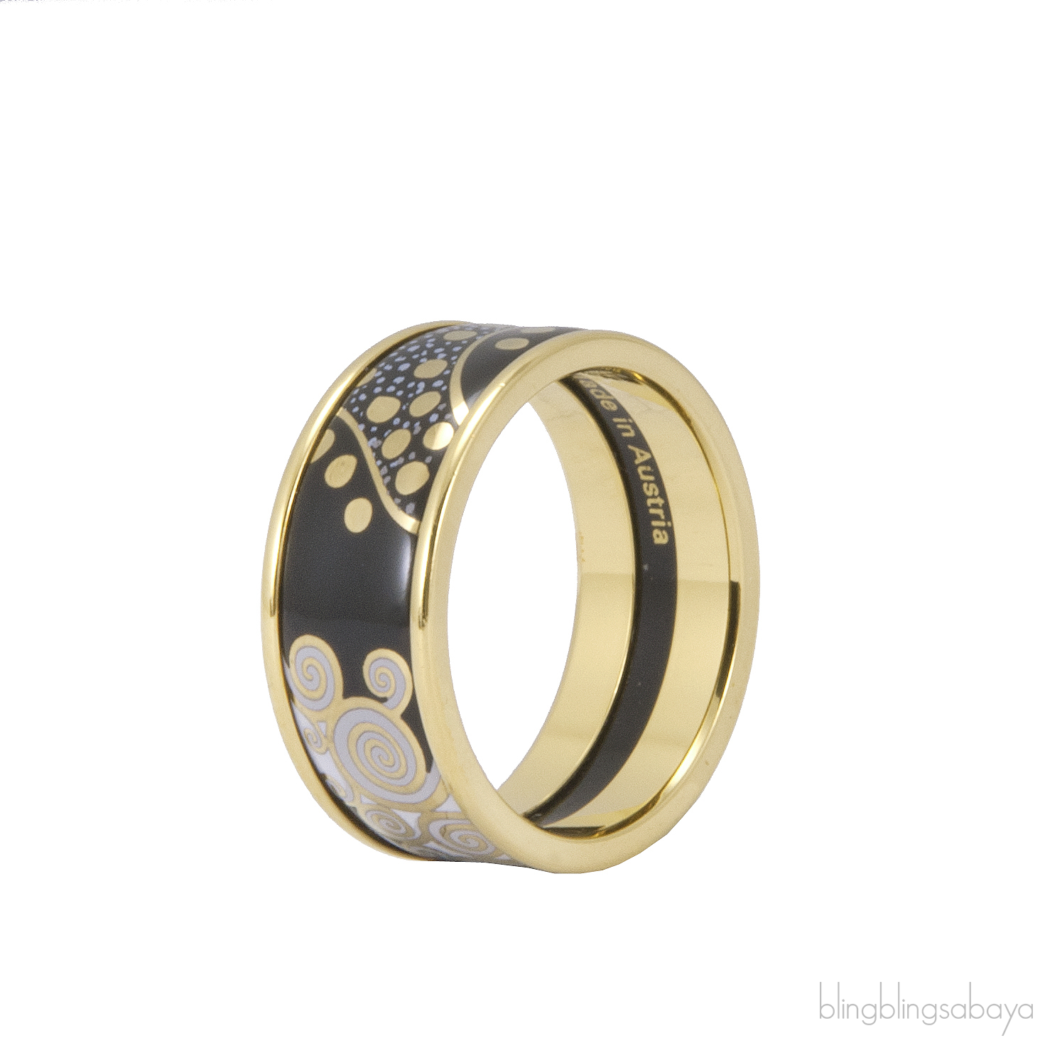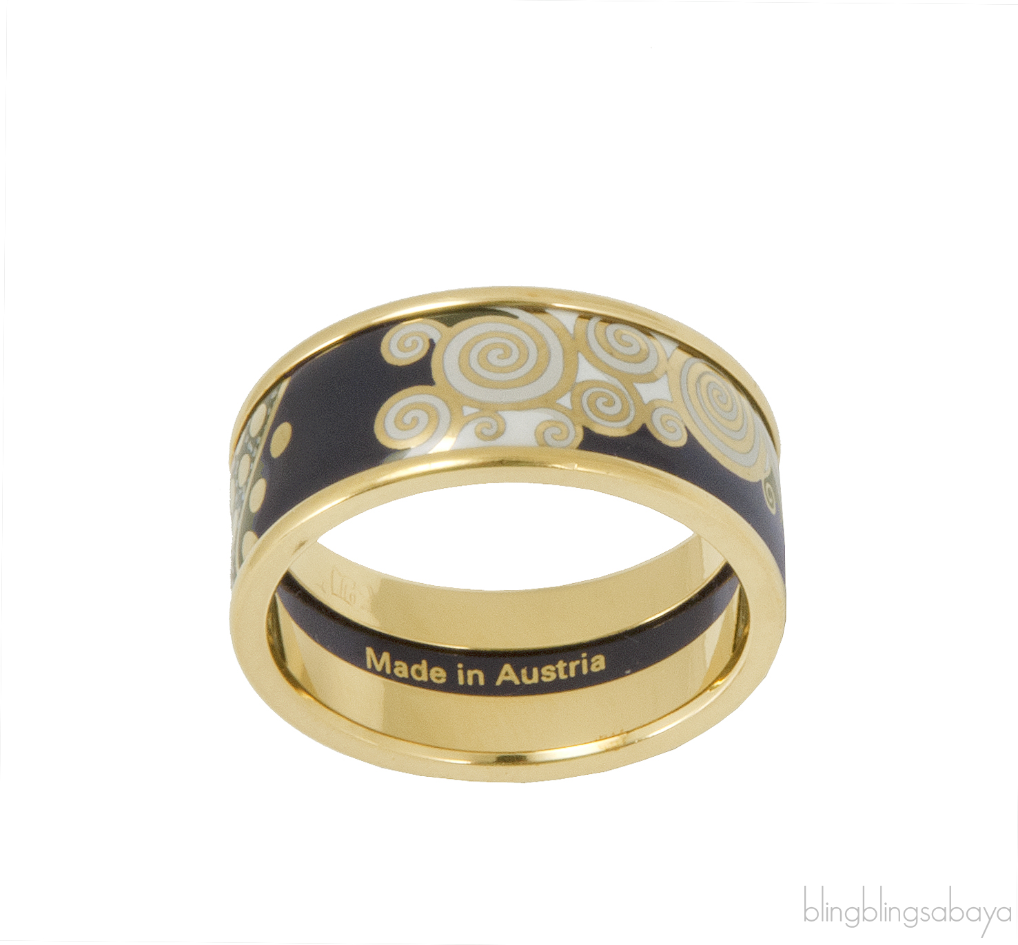 This Ring Etoile Diva from Freywille's Hommaga A Gustav Klimpt Collection is crafted in 18kt Yellow Gold and artistically-decorated fire enamel with gold border.