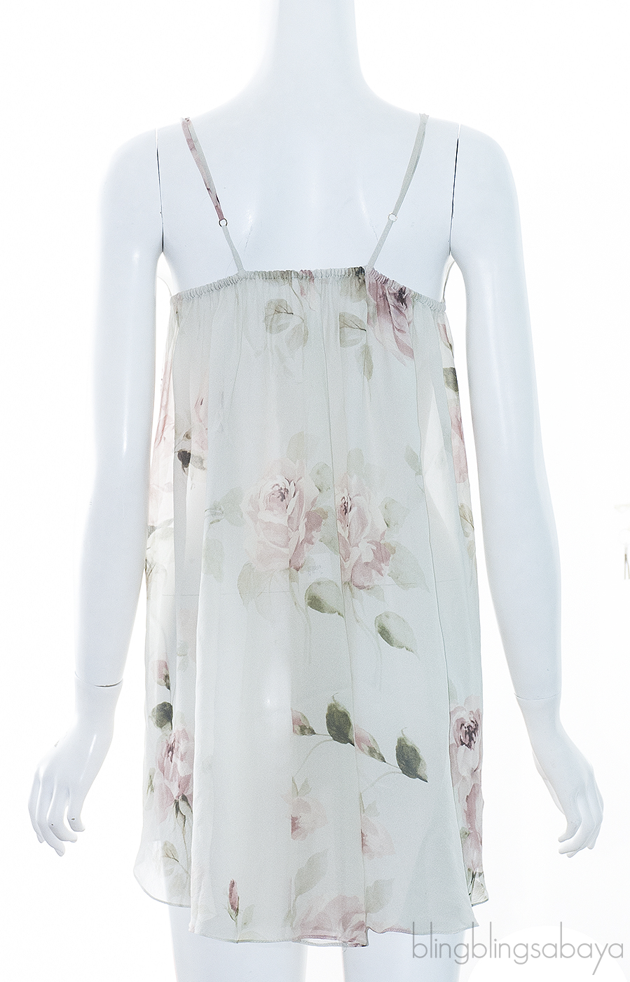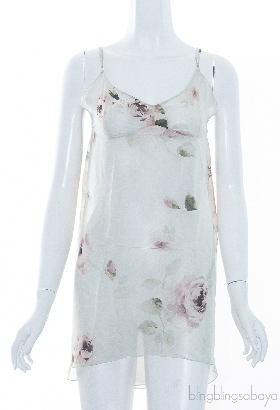This Rose Printed Silk Nightdress from Rosamosario is crafted in 100% Silk in off-white with rose floral print all-over in V-neckline, adjustable string shoulder strap, elastic at rear, pull-over, long back.