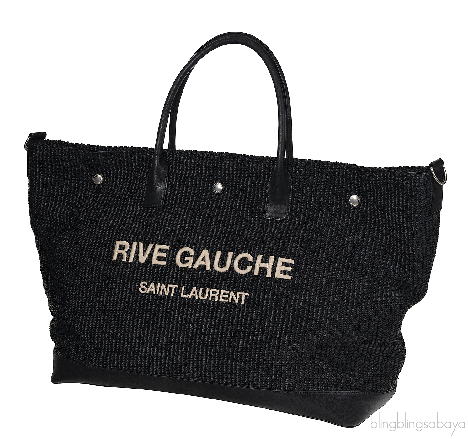 Saint Laurent Black Raffia Rive Gauche Black Oversize Tote