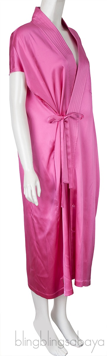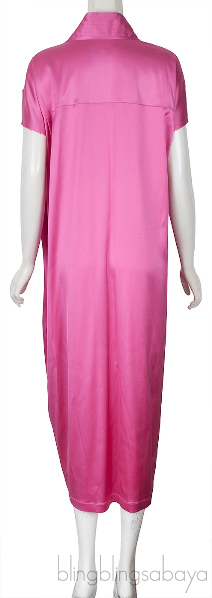 This Satin Judo Wrap Dress from Balenciaga is crafted from 81% Acetae, 26% Viscose & 3% Elastane in Fuchsia Pink hue. This Dress features a wrap closure with self-tie laces on the inside and waist. Raw-cut hems, chest pocket, side slit pockets, buttons on the hem. Unlined.