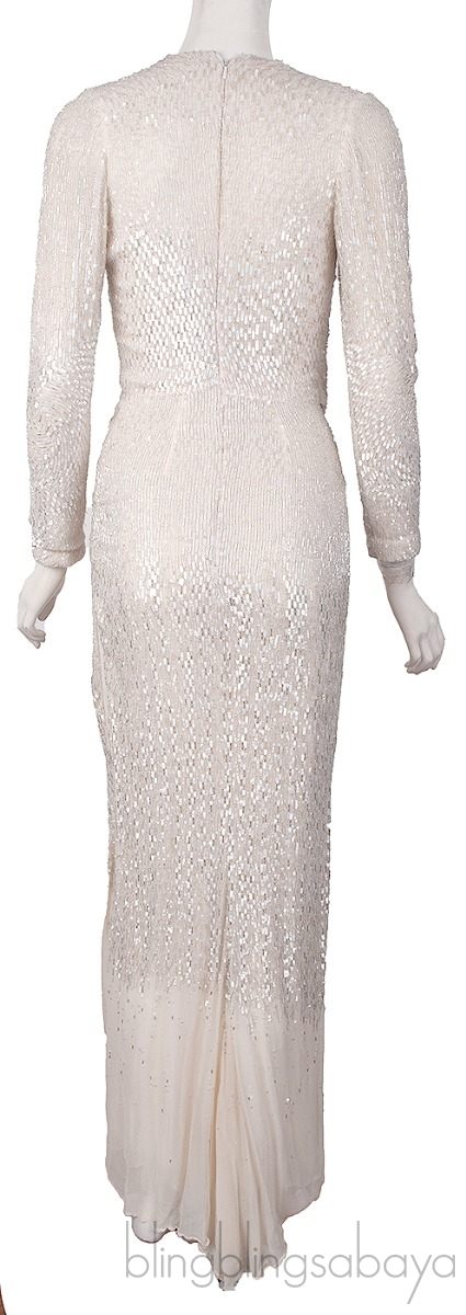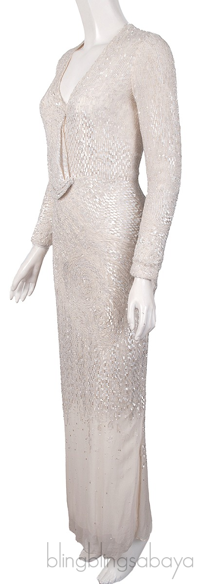This Sequin & Bead Embellished Long Sleeve Dress from Elie Saab is crafted from off-white fabric embellished with beads and sequins. This dress features a v-neckline, long sleeves, zip fastening at rear and maxi length.