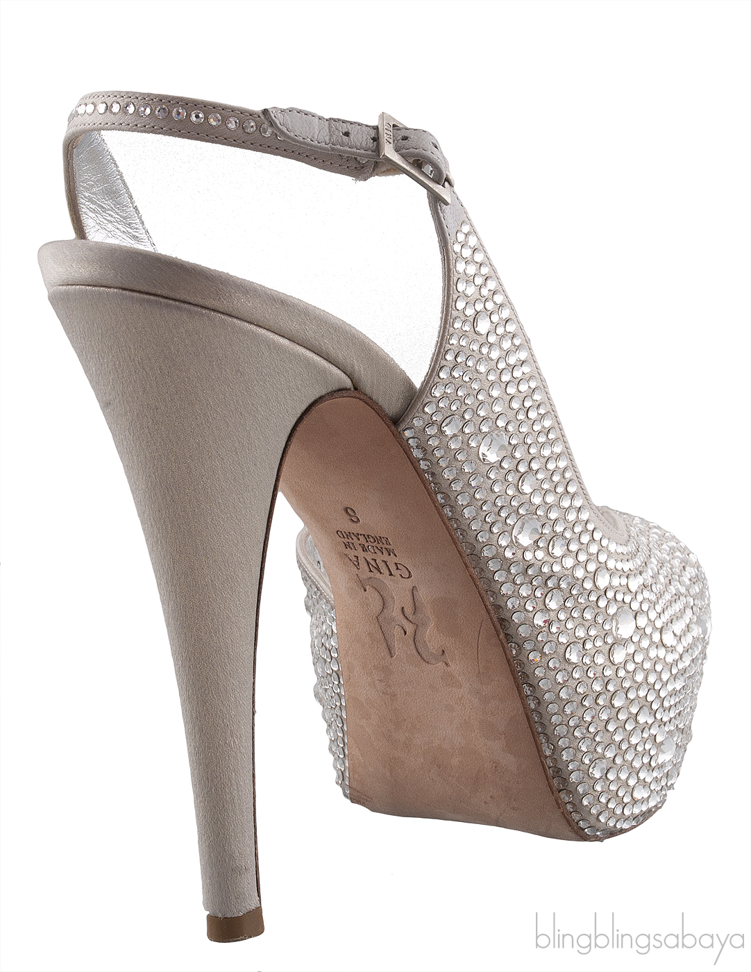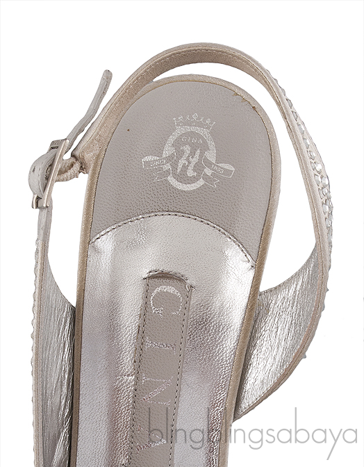 ThisSilver Crystal Platform Heels from Gina is elegantly encrusted with swarovski crystal in silver leather. Designed in a leg-lengthening high heel silver leather upper, slingback with silver buckle fastening and finished in an open toe.