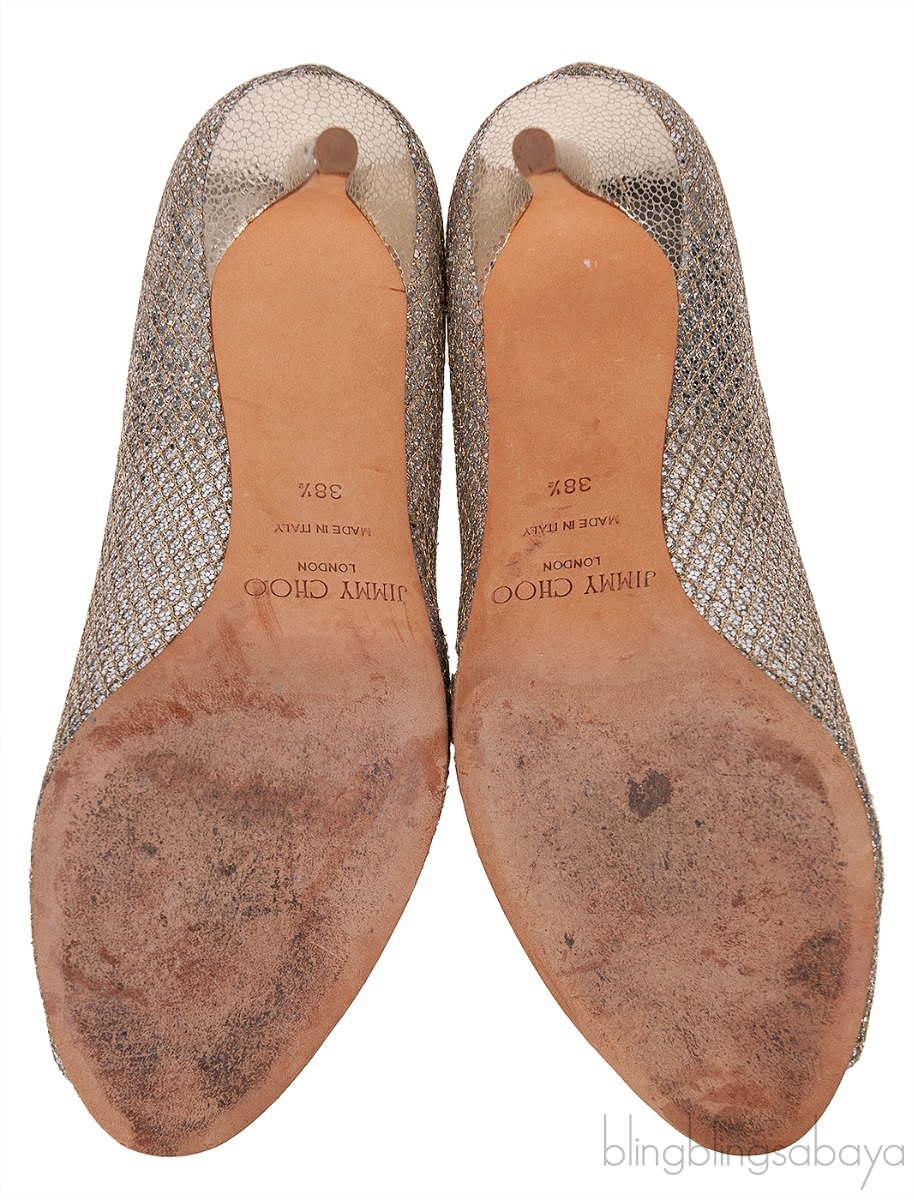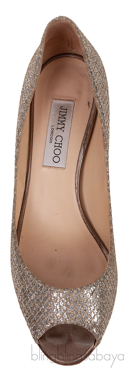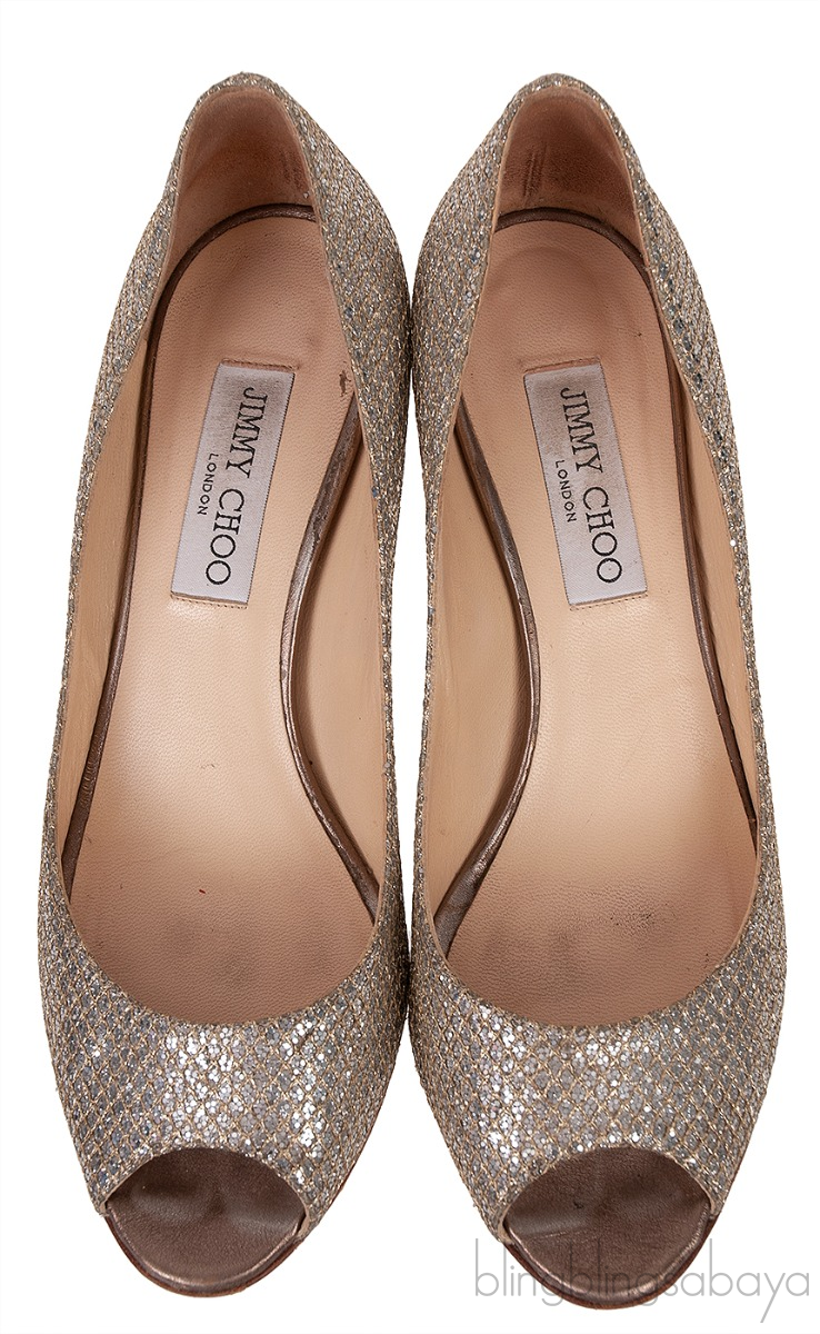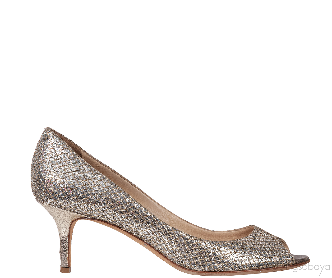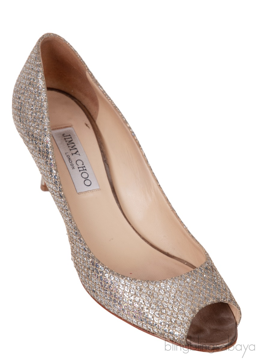 Jimmy Choo Silver Glittery Peep Toe Pump!