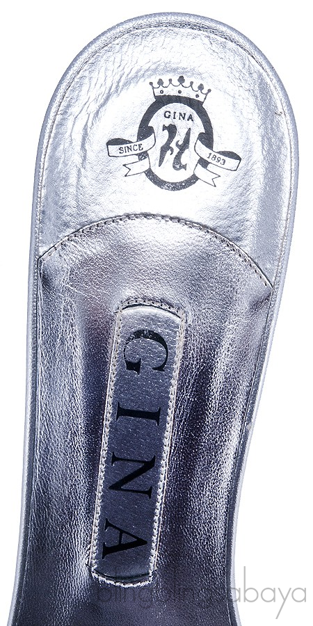 This Silver Leather Bow Crystal Sandals from Gina is crafted in Silver Leather with leather lining. This slip on sandals features a covered heels measuring 100 mm , leather lined insole, peep toe and a bow leather vamp adorned with crystals.