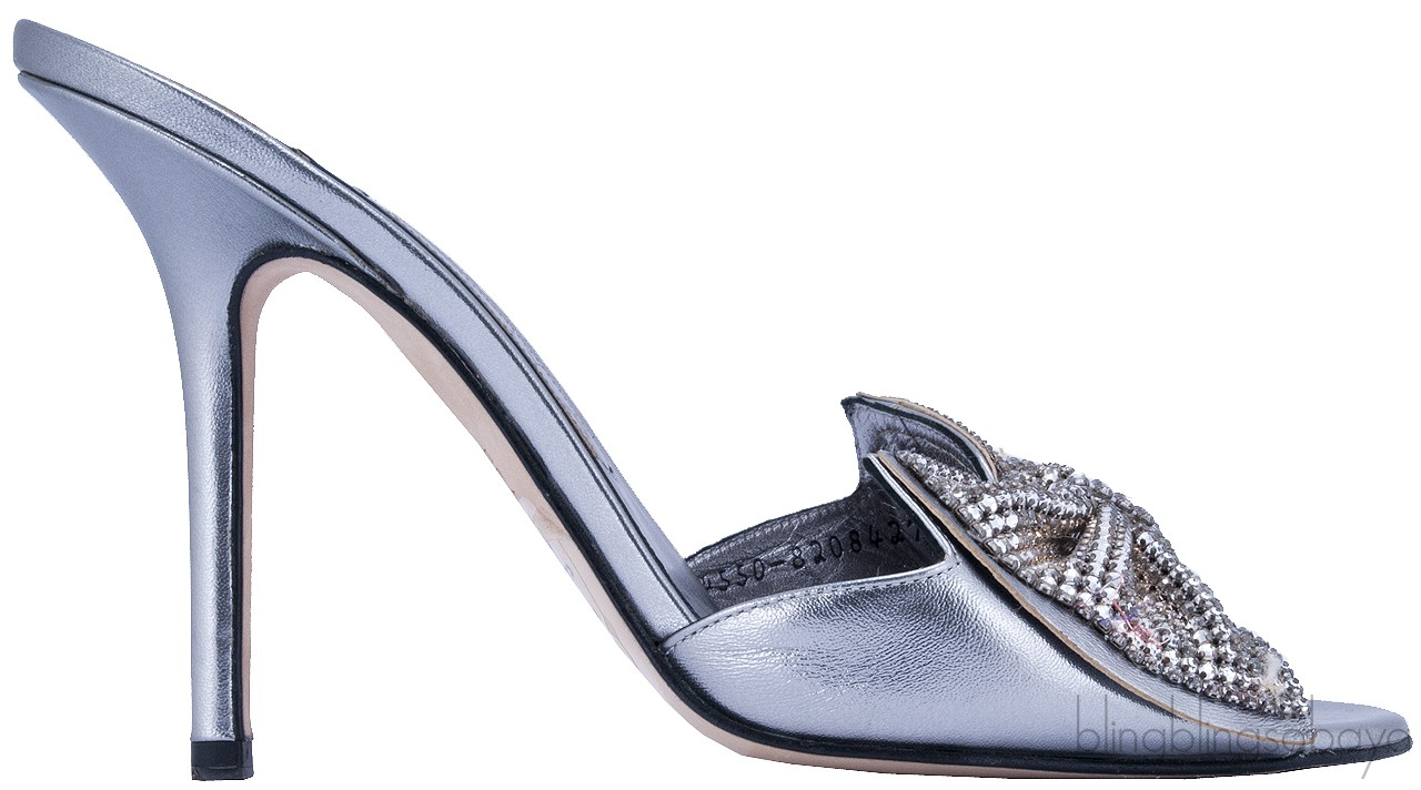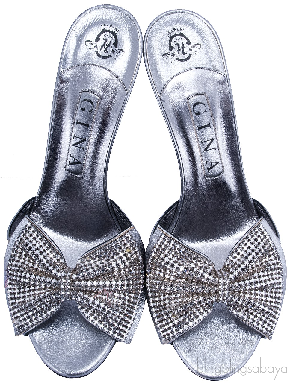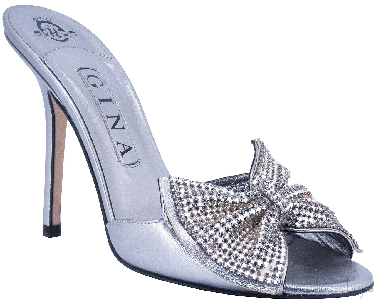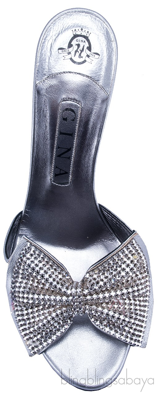 Silver Leather Bow Crystal Sandals from Gina!