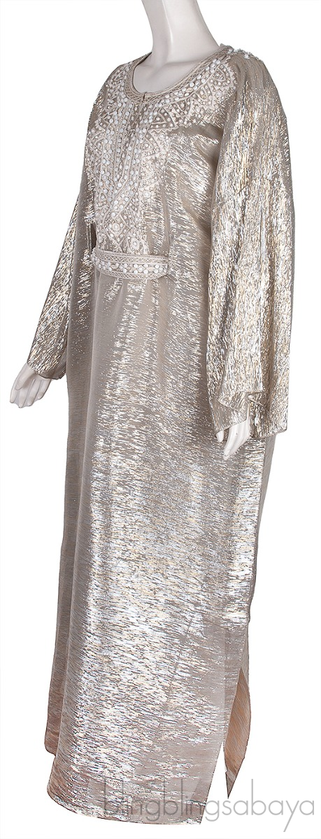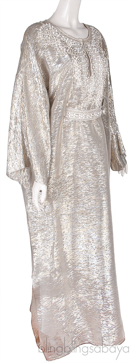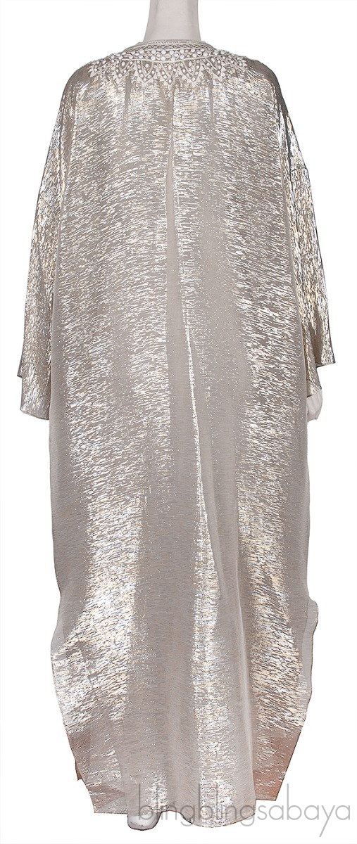 Silver Metallic Beaded Kaftan Dress