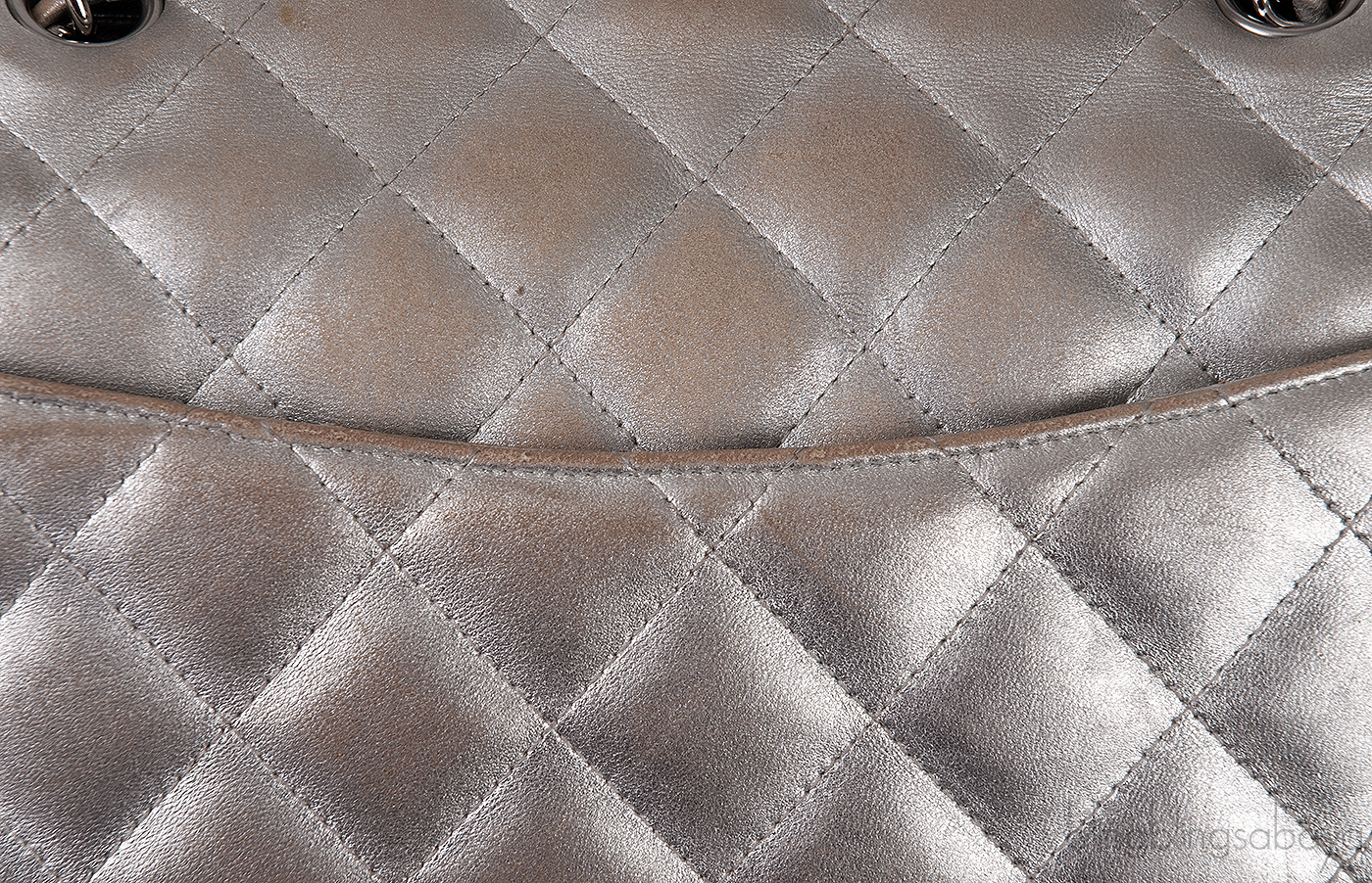 Chanel Silver Quilted Classic Jumbo Flap Bag PHW!