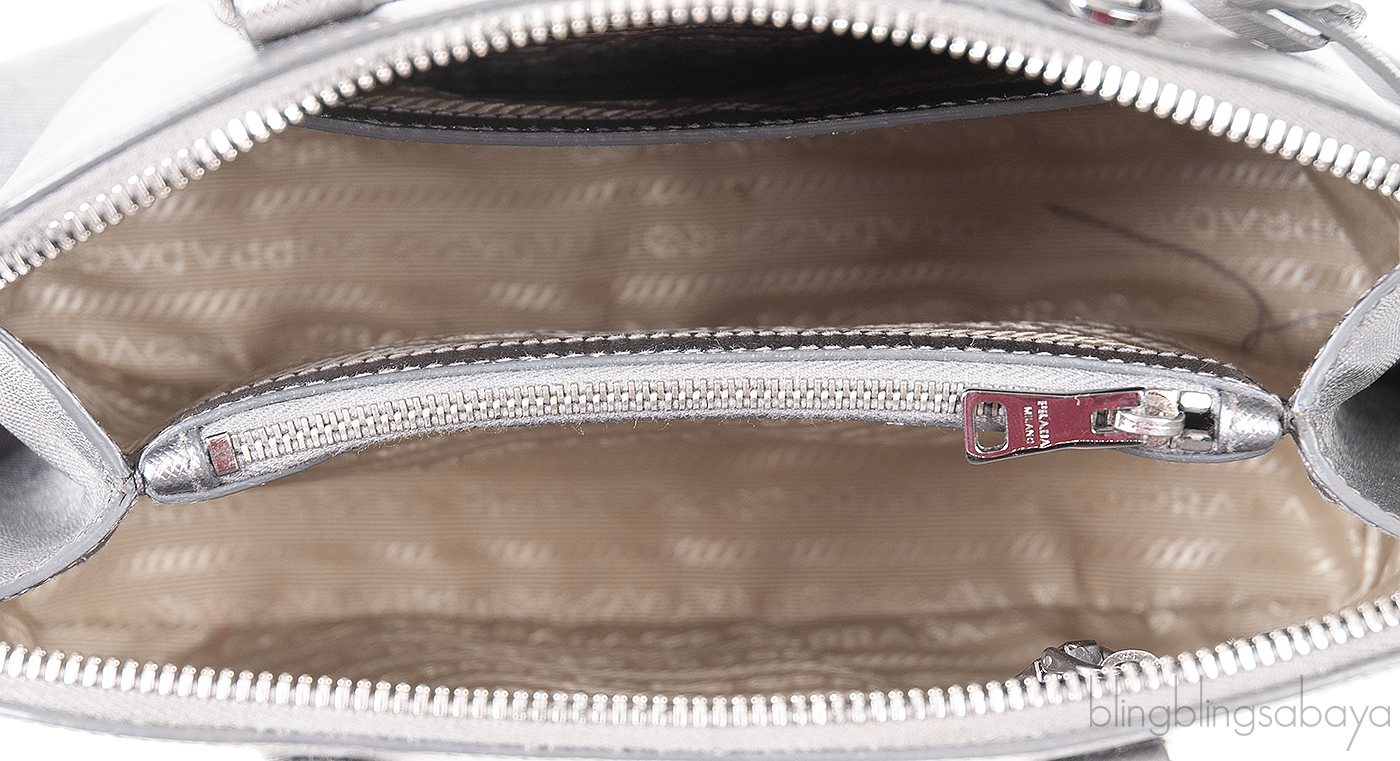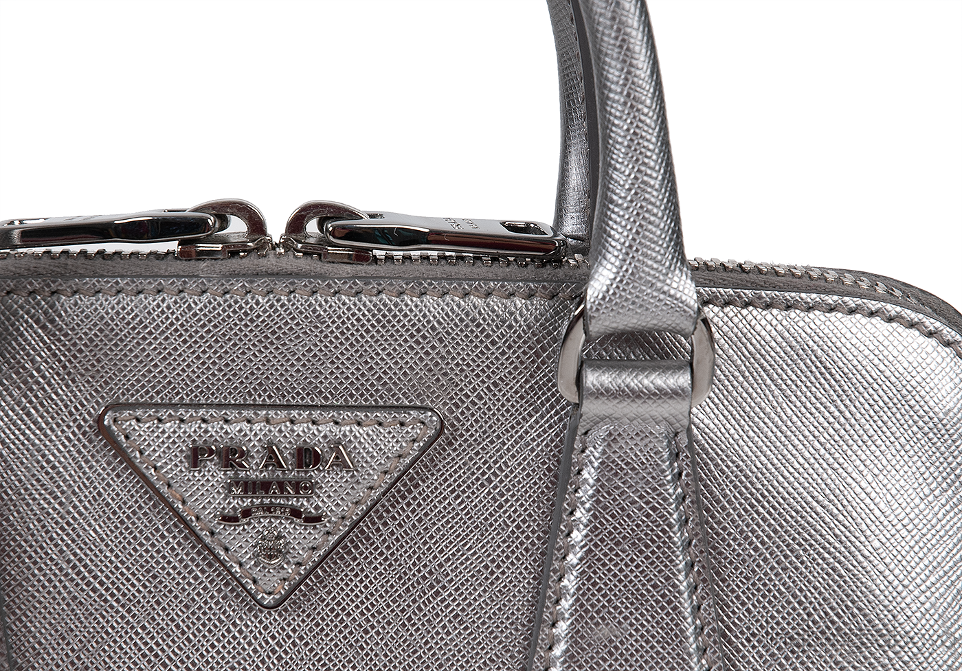 Silver Saffiano Promenade Top Handle Bag from PRADA!