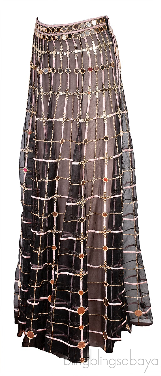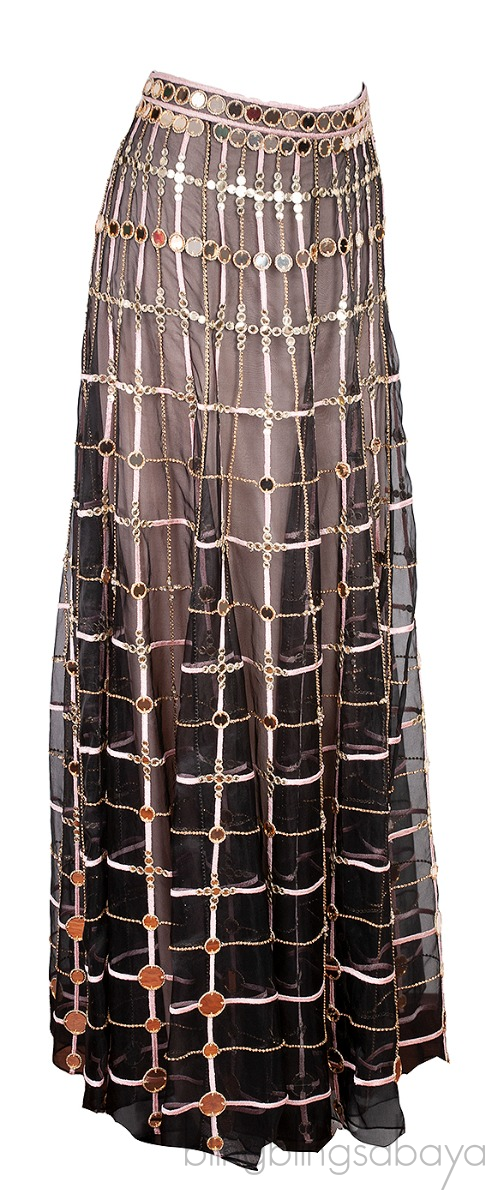 This Mirror & Crystal Embellished Black Maxi Skirt from Temperley London is crafted from 100% Silk Sheer mesh fabric. This skirt is decorated with crystals and mirror, maxi lenght and nude fabric lining.