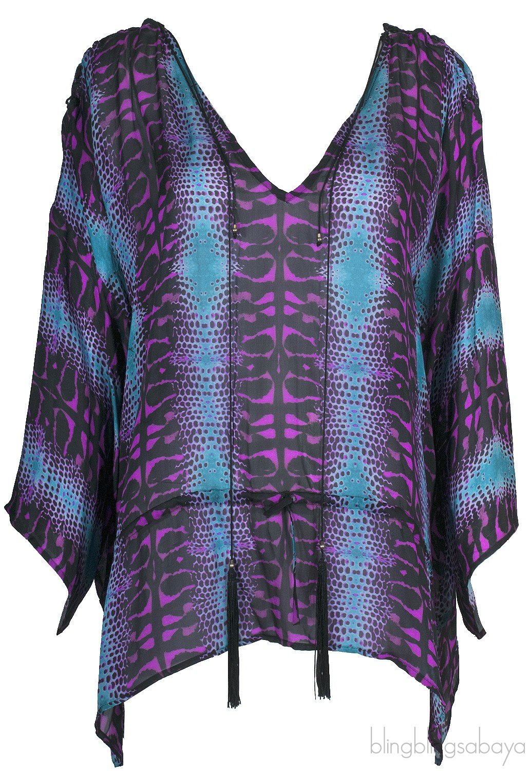 This Snake Print Oversized Top from Roberto Cavalli is crafted in 100% Sillk fabric featuring a snake print design all over, V-neckline, string tassel detailing on shoulder, longsleeves, oversized design with drawstring fastening.