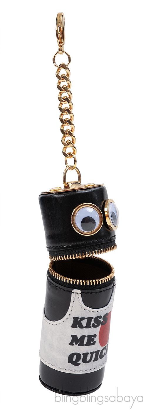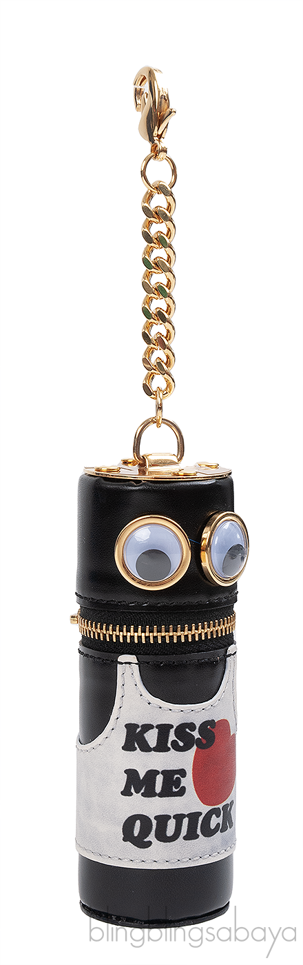 This Kiss Me Quick lipstick pouch is a quirky storage option for your favorite lipstick. Crafted from luxurious calfskin leather with bound edges and signature googly eyes, this one makes a charming addition to handbags.