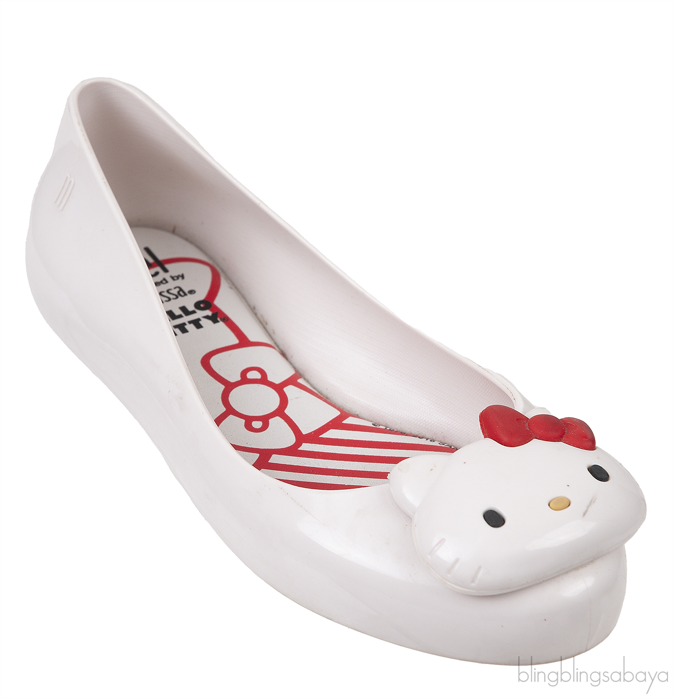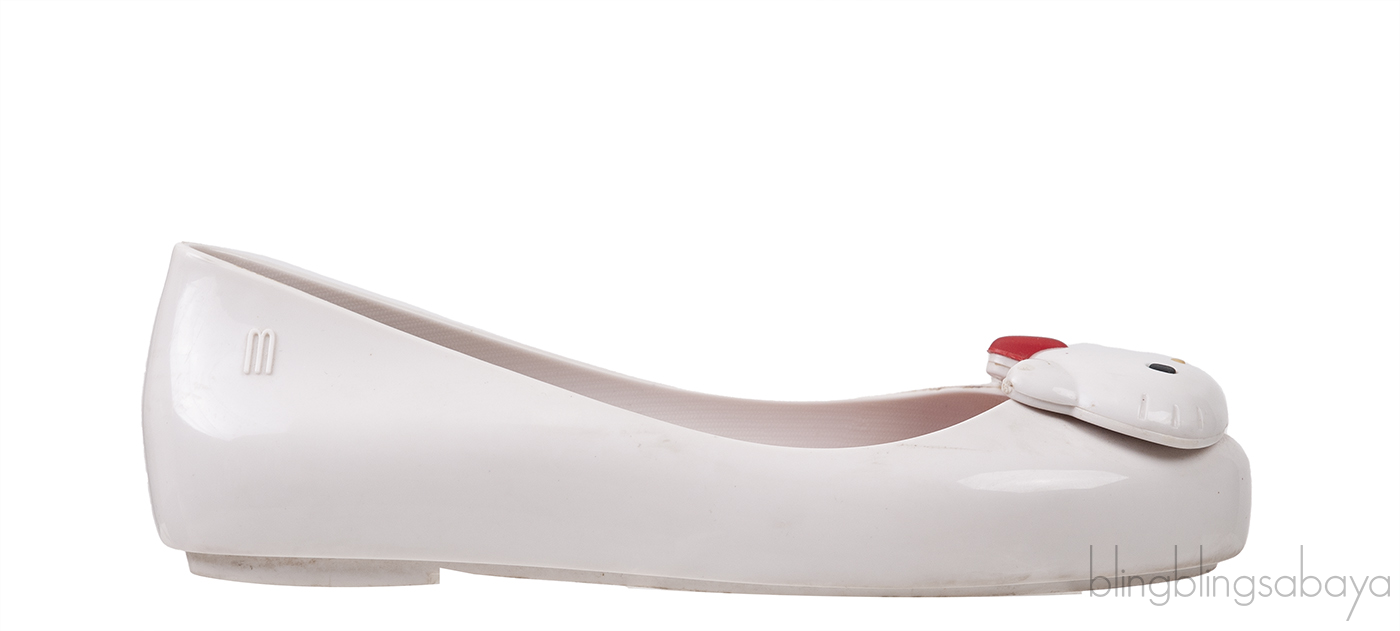 These cute Space Love Kitty Kids Ballet Flat from Melissa are crafted from white pvc featuring 3D Hello Kitty detail at vamp, almont toe and printed insole.