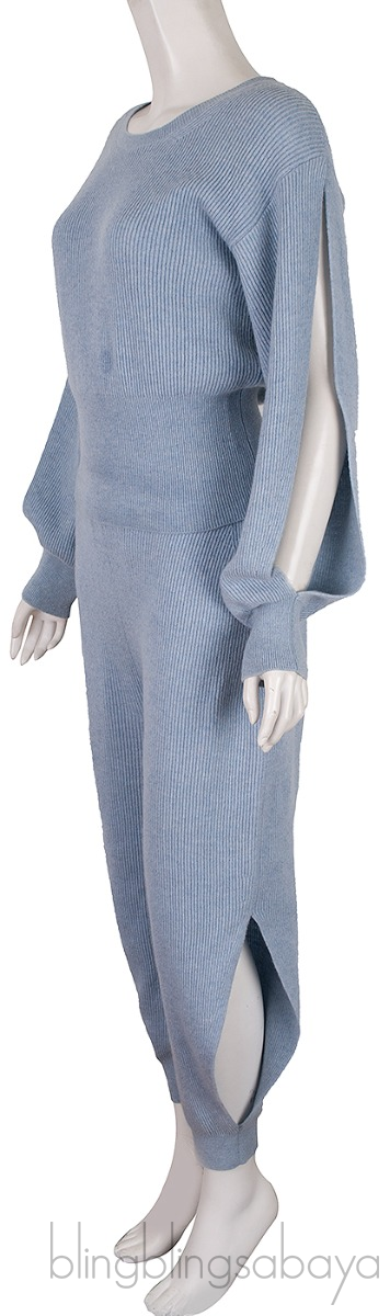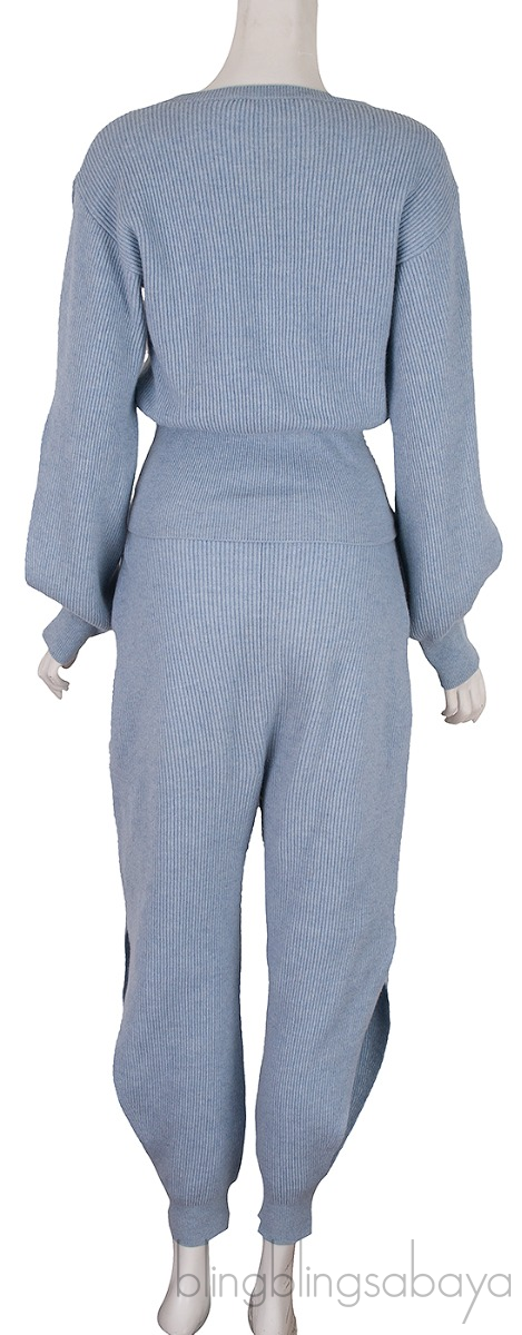 Light Blue Knitted Sweatshirt & Knit Pants