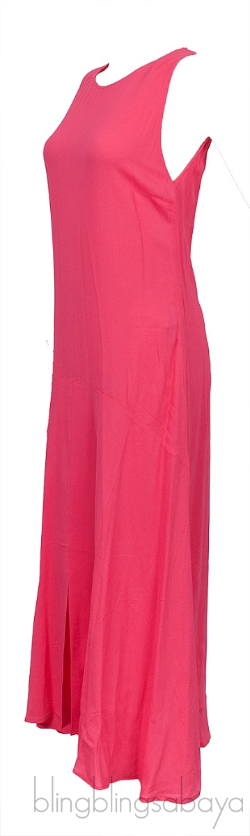 This Pink Sleeveless Dress from Stella McCartney is crafted in 97% Viscose and 3% Elastane. This dress features a round neckline, sleeveless, zip fastening at rear, slit at front and maxi length.