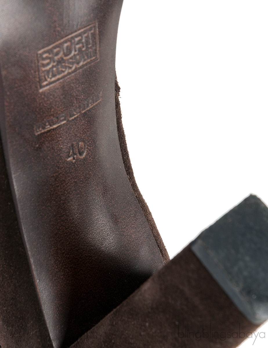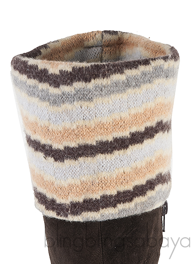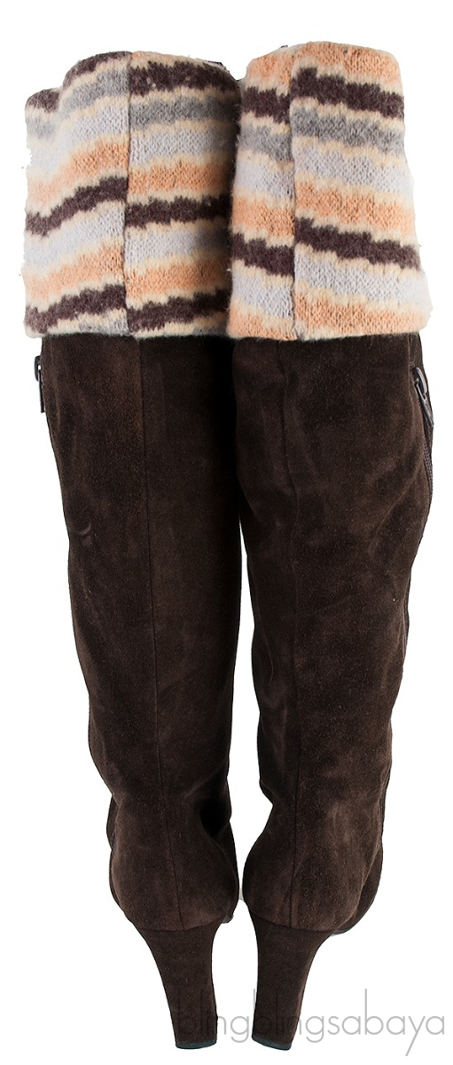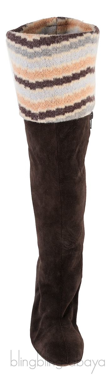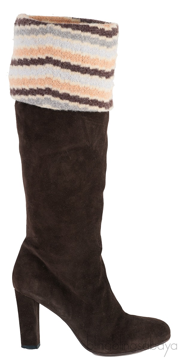 These Brown Suede Leather Boots from Sport Missoni are crafted from brown suede leather. These boots features a round almond toe, 80 mm high stacked heels, leather lining and 45 cm shaft. Shaft upper is lined with stripe fabric which can be folded for optional shaft length.