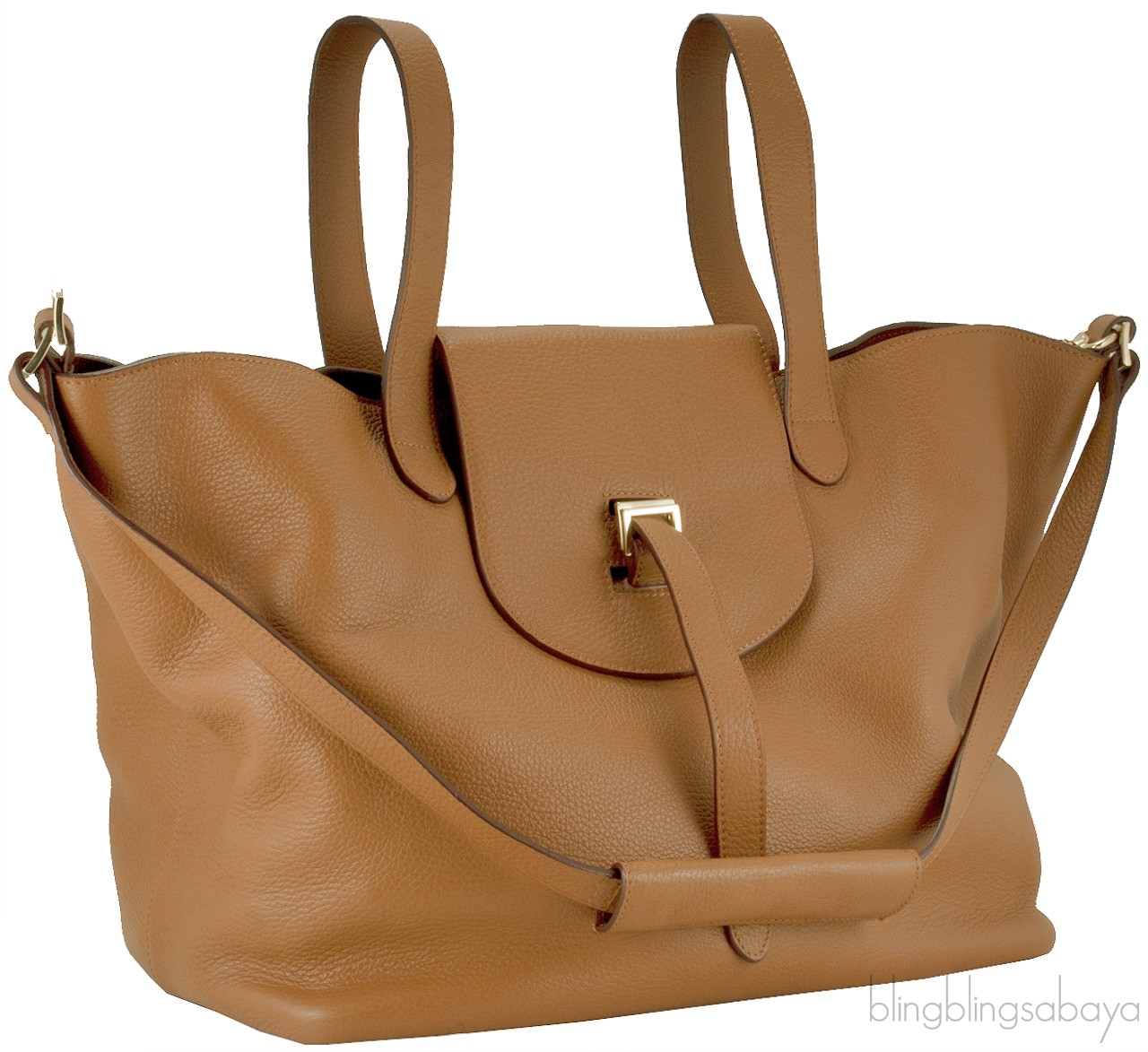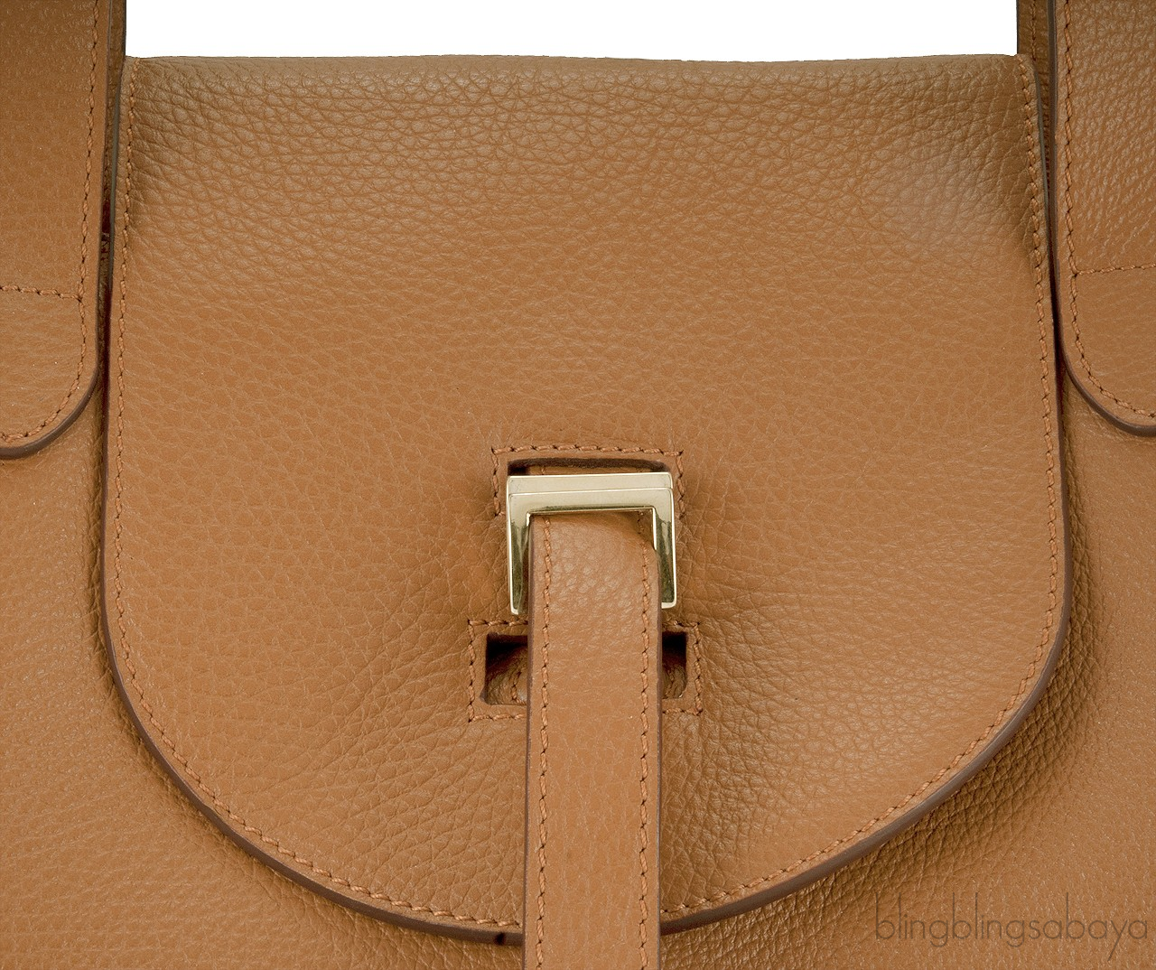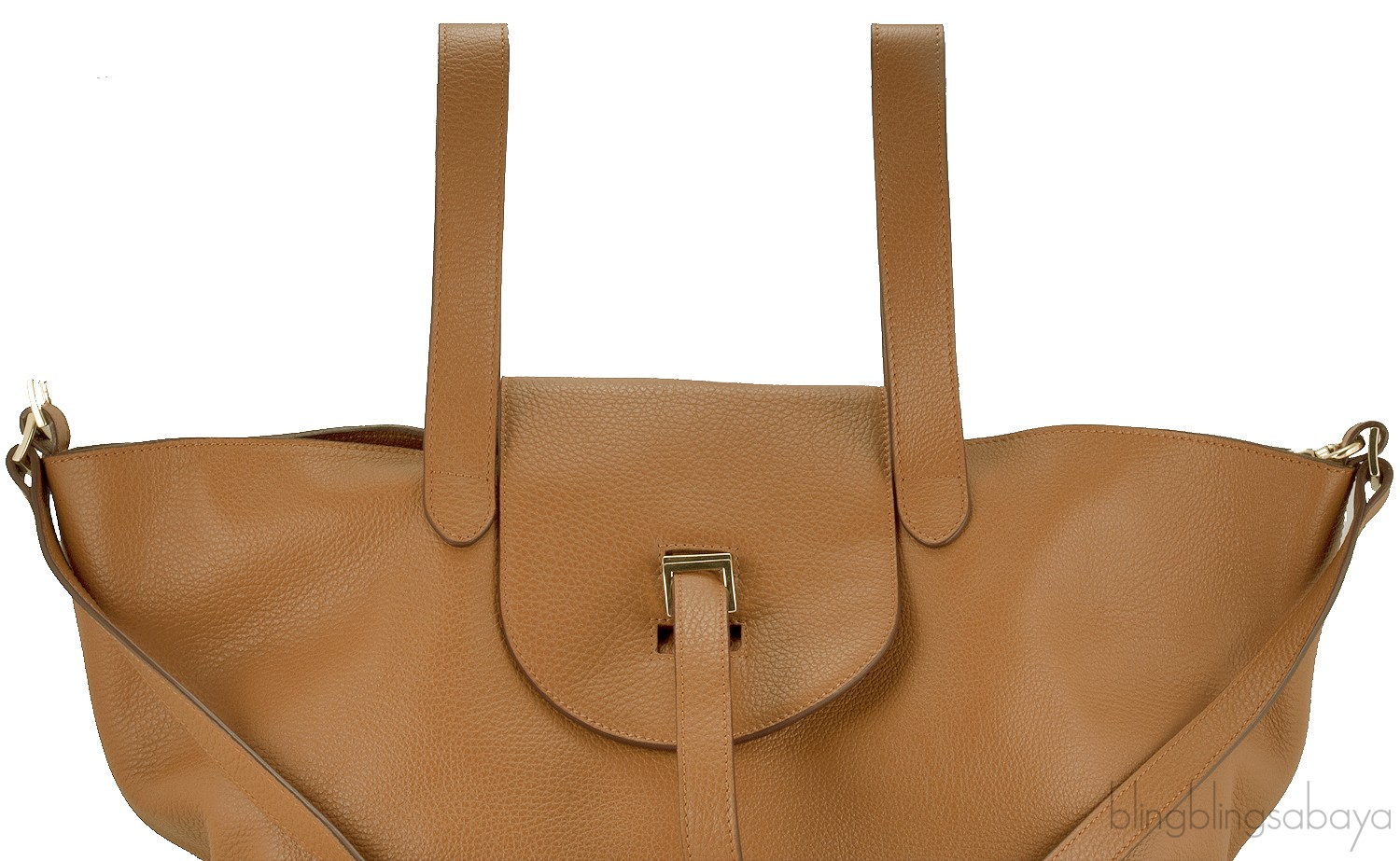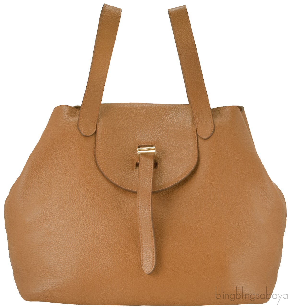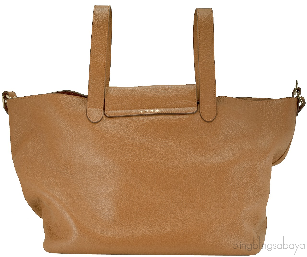This Thela Tan Handbag from Meli Melo is beatifully crafted in butter soft ilatian leather accented with the Golden Hardware. This bag features a flap cover with pull through fatening at front. It has two inverted flat top handles and optional shoulder strap.