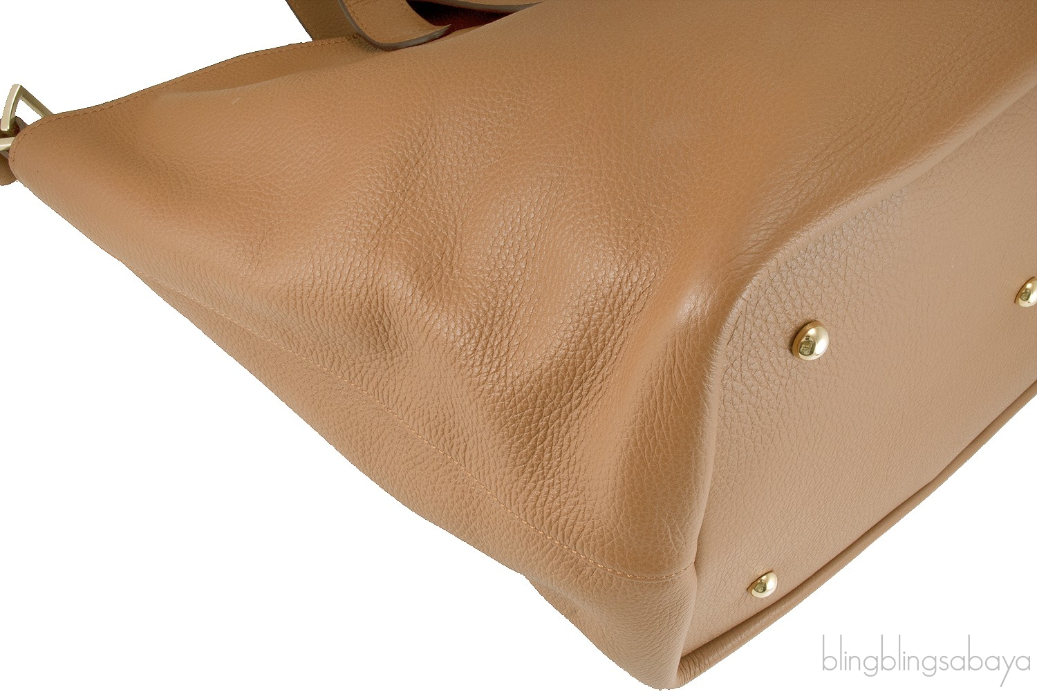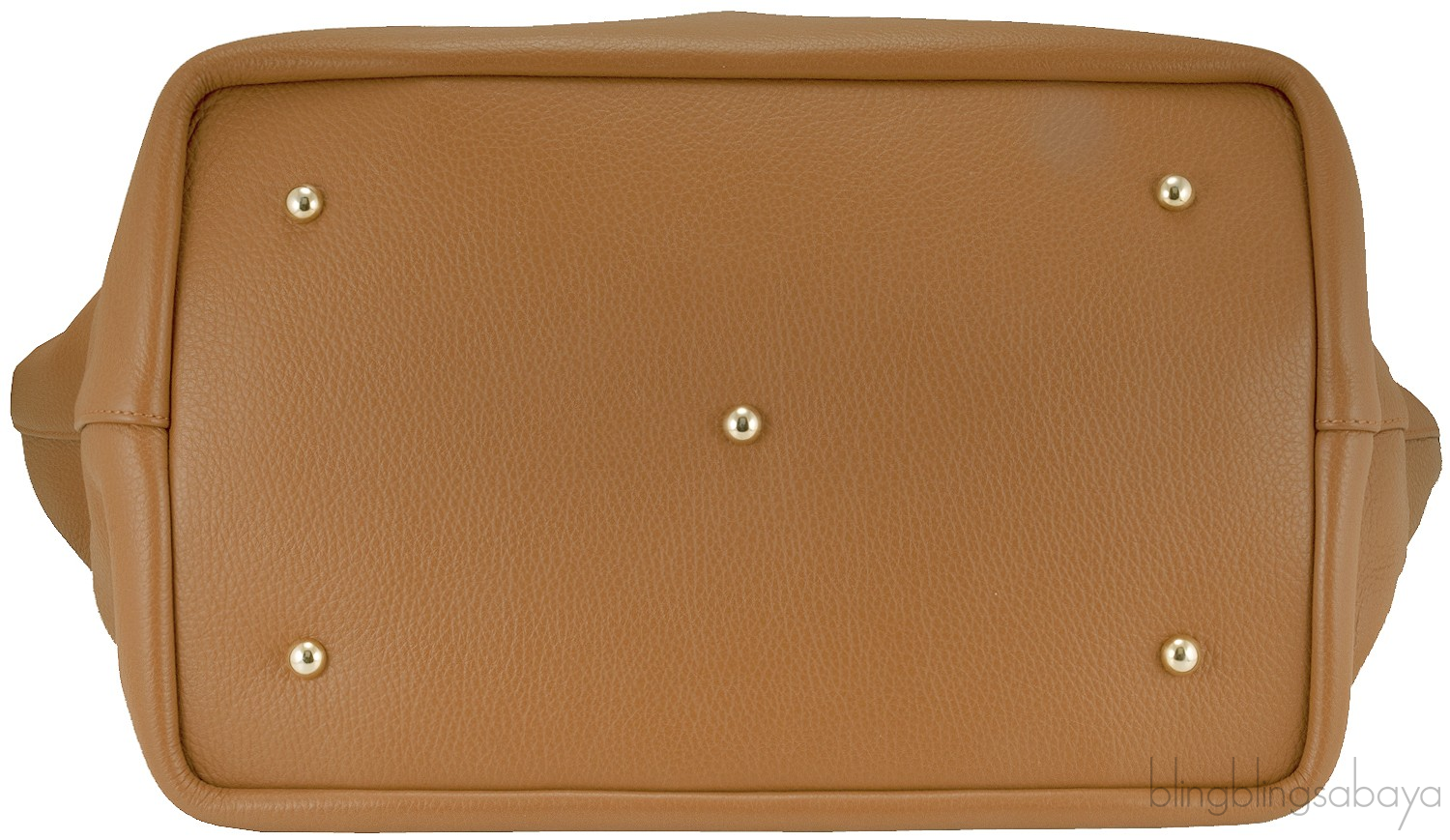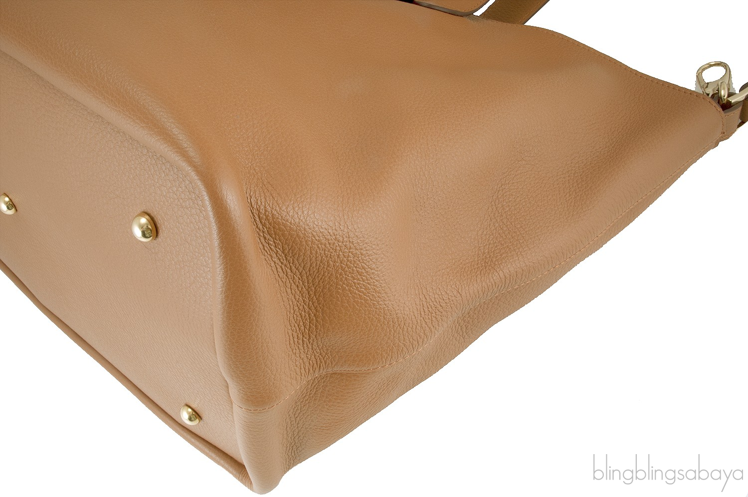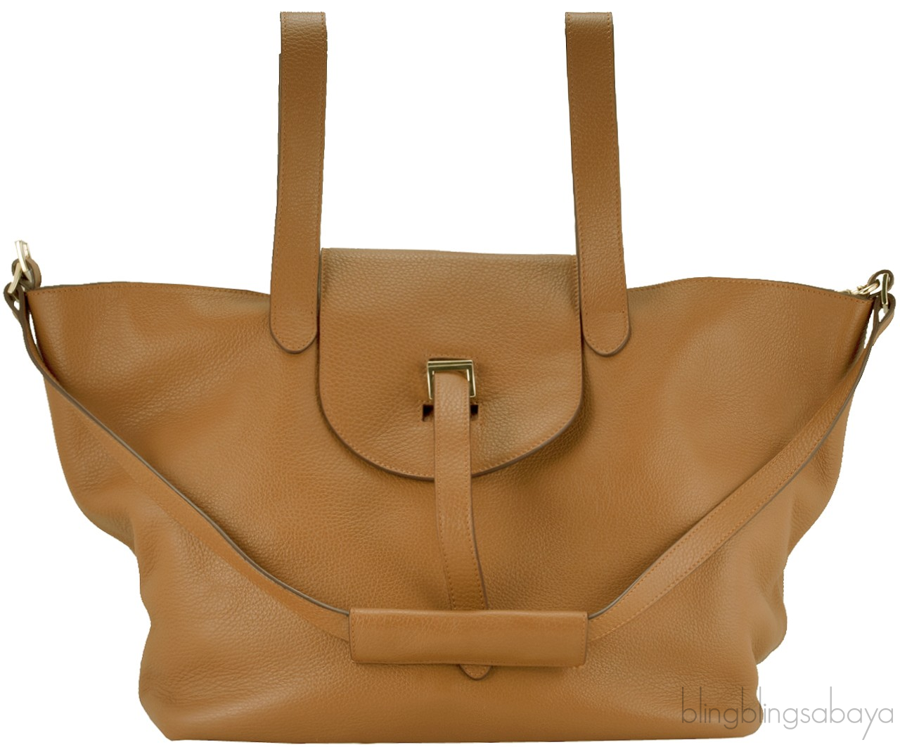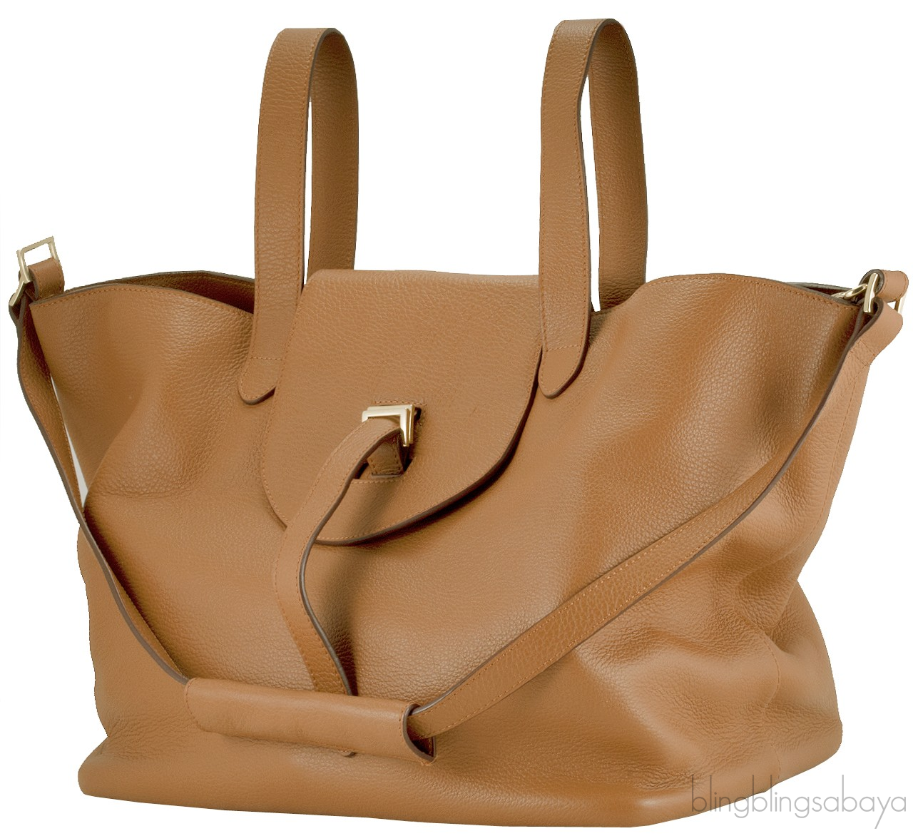 This Thela Tan Handbag from Meli Melo is beatifully crafted in butter soft ilatian leather accented with the Golden Hardware. This bag features a flap cover with pull through fatening at front. It has two inverted flat top handles and optional shoulder strap.