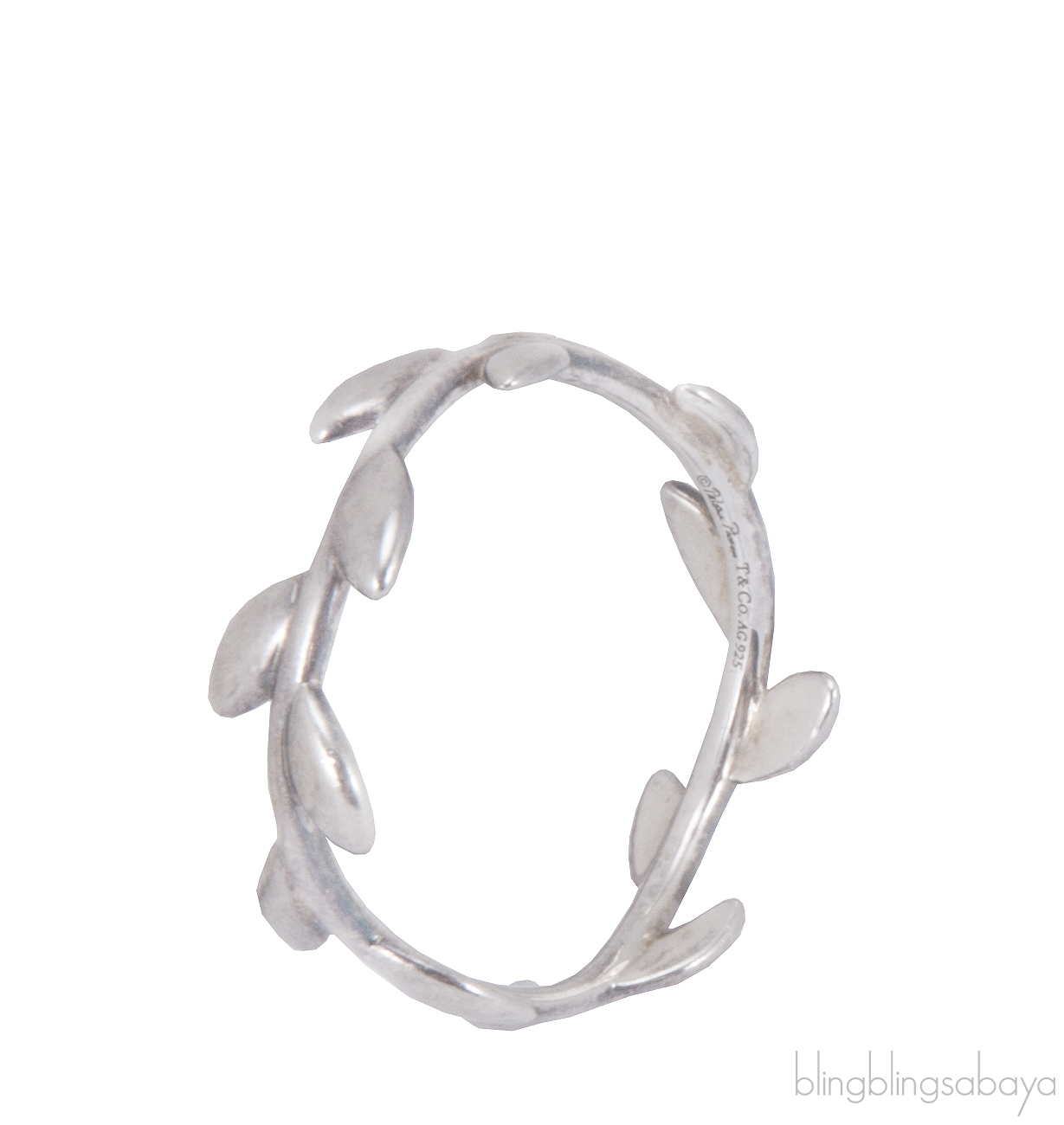 This Paloma Picasso Olive Leaf Silver Ring from Tiffany & Co. is crafted in sterling silver narrow band ring, olive leaf design honors the olive branch, a symbol of peace and abundance.