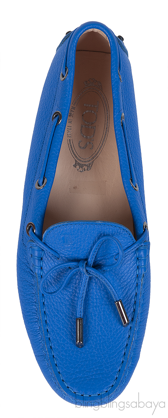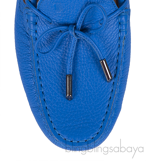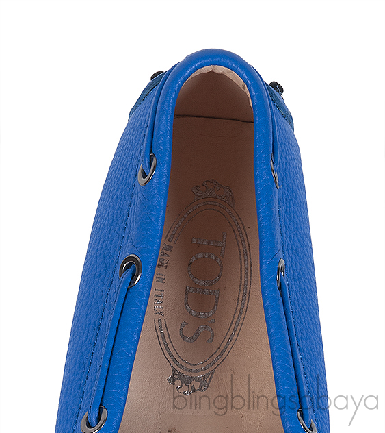These Royal Blue Loafer Shoes from Tod's are crafted from royal blue leather upper with nude leather lining. This loafer features a closed round toe, coordinating stitching, string bow at the vamp logo2 silver stamp on the insole and pebbled rubber sole.