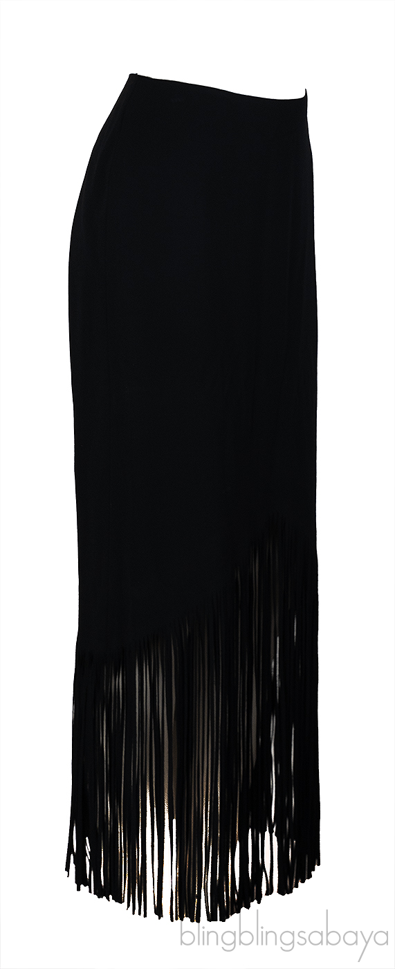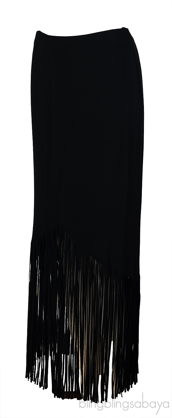 This Tom Ford Black Fringed Skirt is crafted from viscose, acetate and elastane fabric in black hue. This skirt features a hook and zip fastening at rear and fringed hemline.