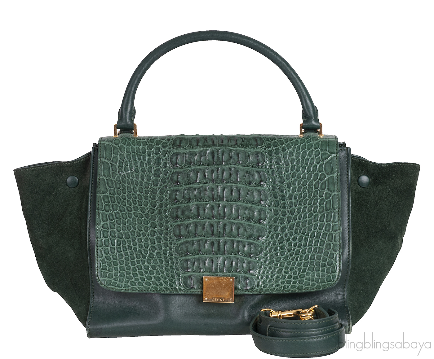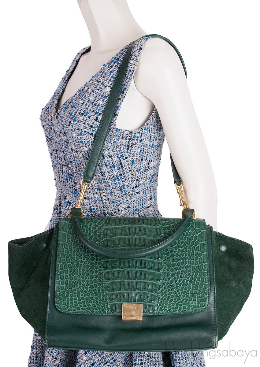 Trapeze Emerald Green Croc Embossed Shoulder Bag from Celine!