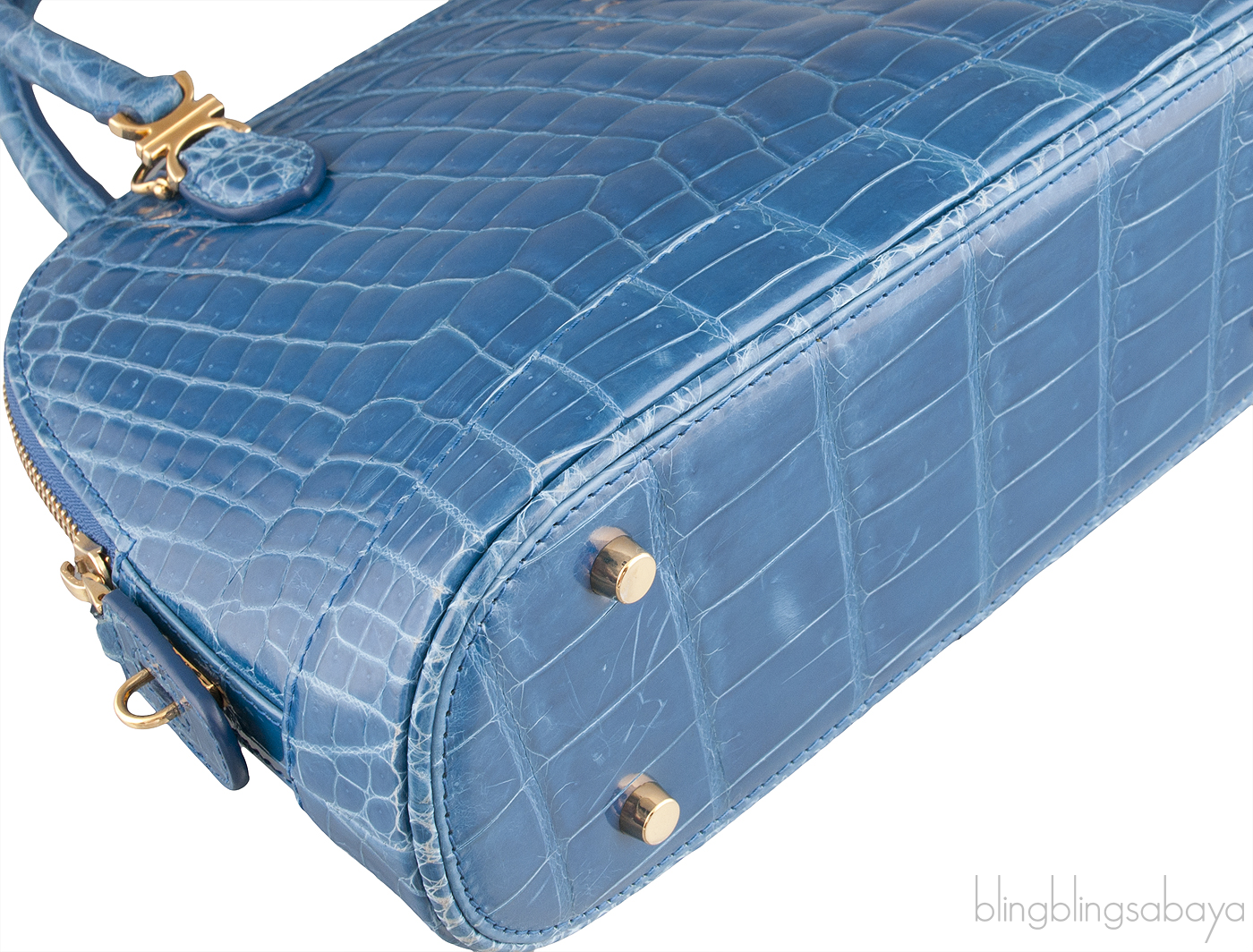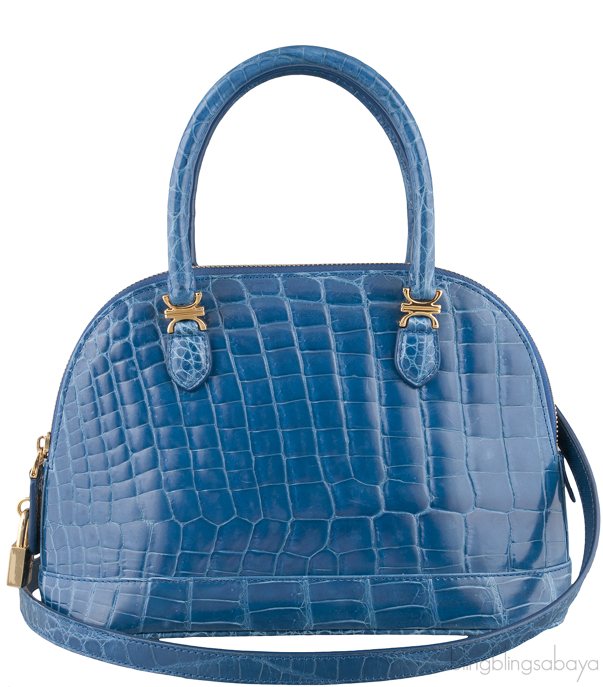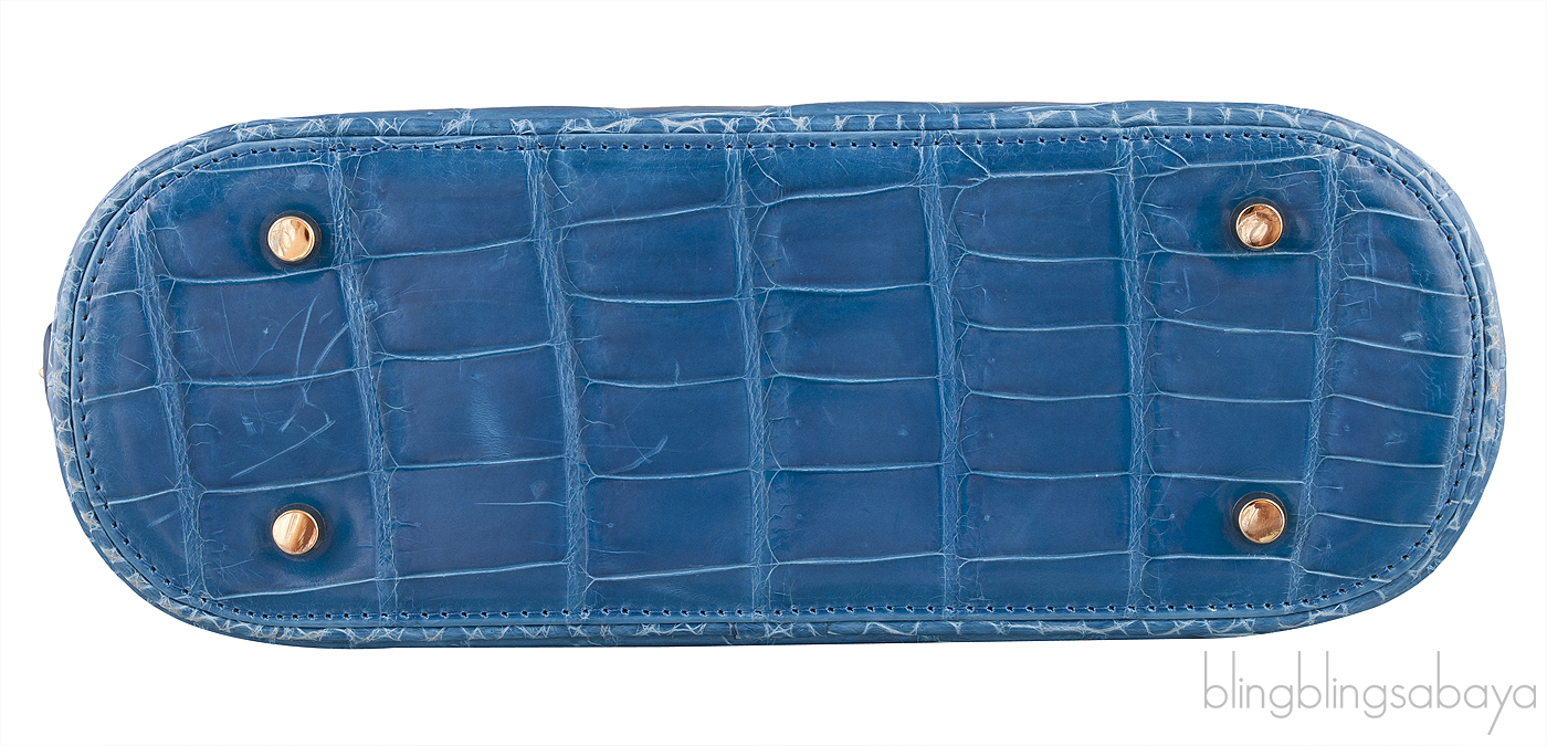 Louis Vuitton Alma inspired Treasure Chest Blue Crocodile Bag from Kwanpen! This cute shoulder bag is crafted in blue crocodile skin accented with gold tone hardware featuring a round structured design with two comfortable rolled leather handles and detachable adjustable shoulder strap.